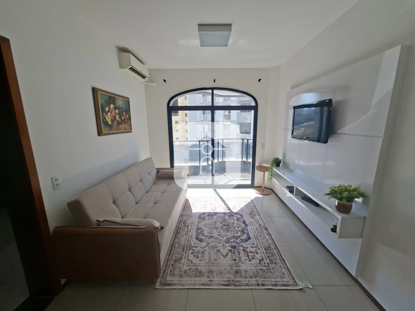 Apartamento com 01 suíte com armário e ar condicionado, banheiro suíte com box vidro e armário sob pia, sala em 02 ambientes com ar condicionado e sacada, cozinha com armário sob pia, área de serviço, elevador, portaria 24 horas, 01 vaga de estacionamento, sauna, piscina. Apartamento semi mobiliado com Sofá, tv, mesa e cadeiras, micro-ondas, geladeira, cooktop/suggar, máquina de lavar, 01 cama de casal.