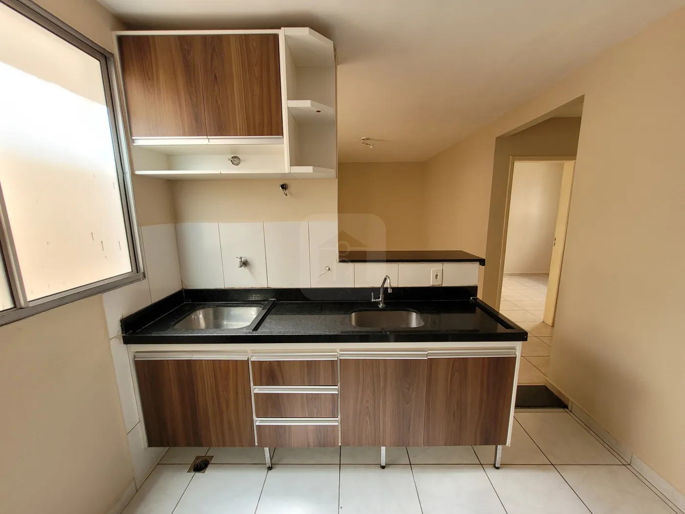 02 quartos, sala, cozinha c/ armário, banheiro social c/ armário sob a pia e box blindex, área de serviço, 01 vaga de estacionamento, portaria 24 horas, playground, quadra esportiva. Aprox. 44m². * Isento de condomínio*