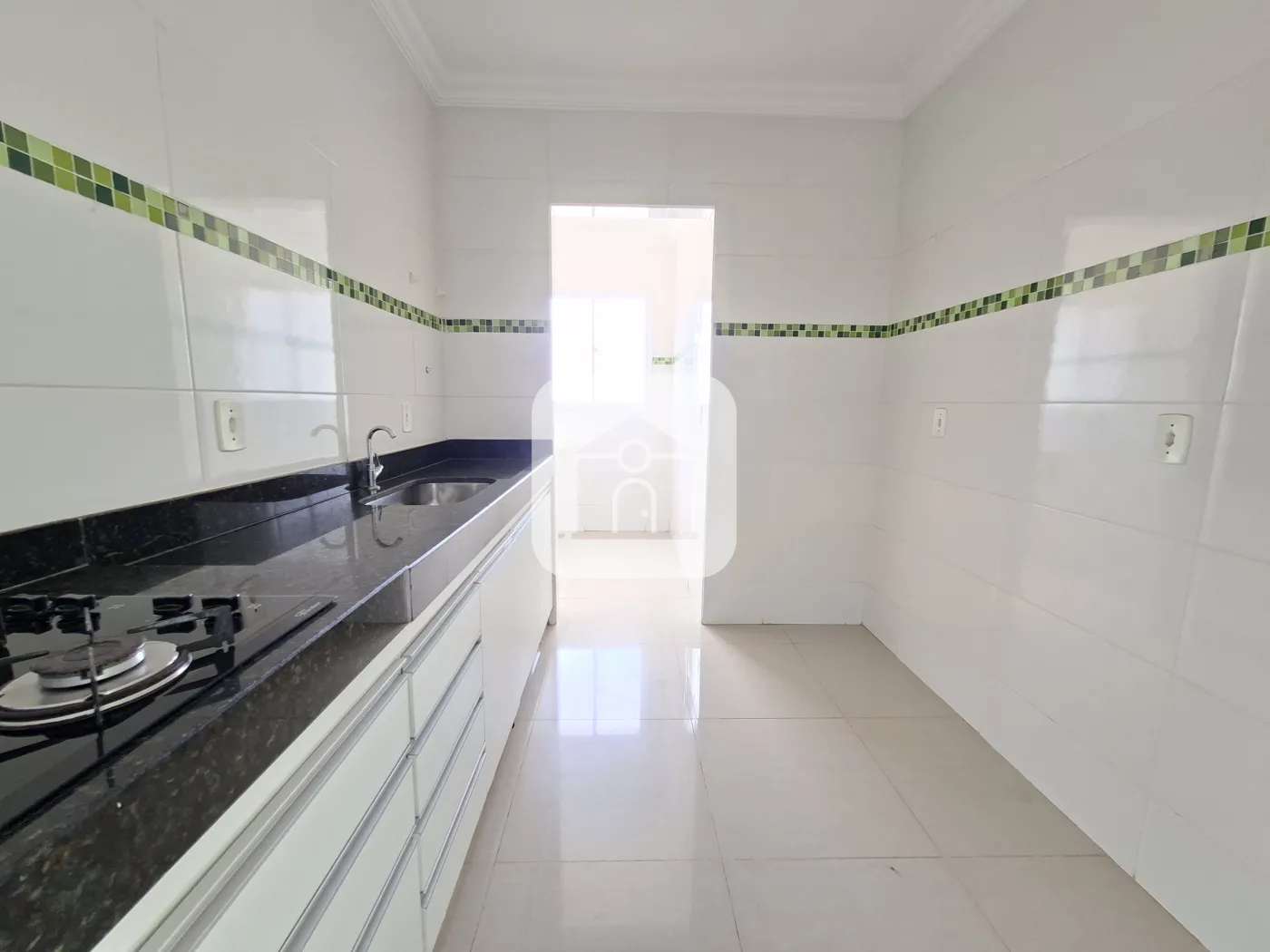 02 quartos, sala em 02 ambientes com sacada, banho social c/ box em vidro temperado e armário sob pia,