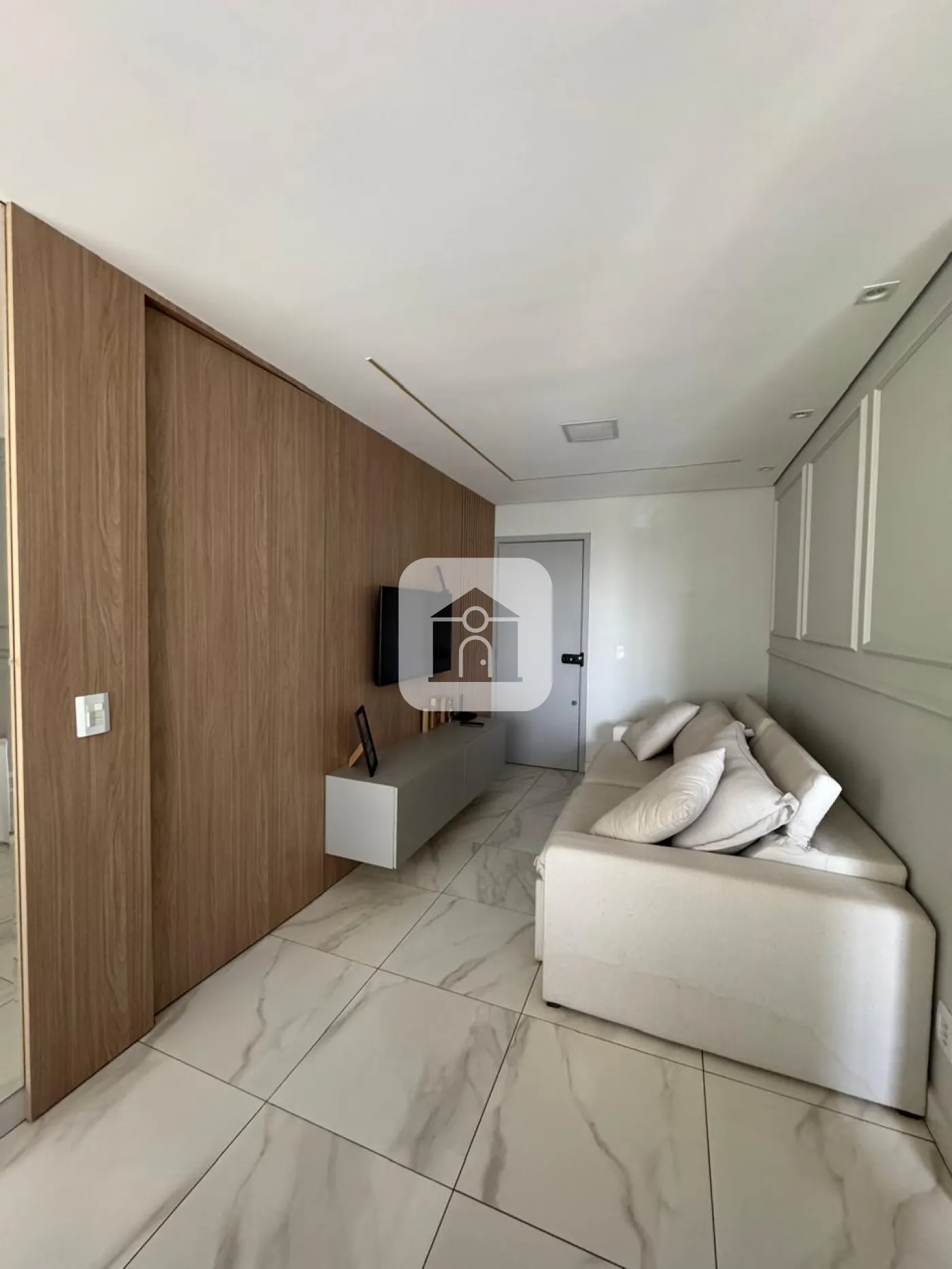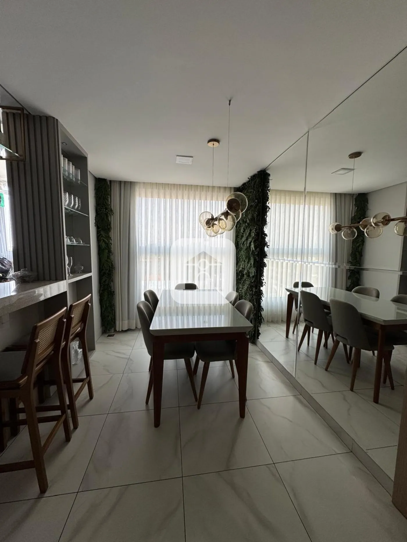 Apartamento com 02 quartos com armário sendo 01 suíte com ar condicionado, banheiro suíte com box vidro e armário sob pia, sala com painel e sacada, cozinha com armário, área de serviço, 01 banheiro social com box vidro e armário sob pia, elevador, 01 vaga de estacionamento, portaria virtual, salão de festa