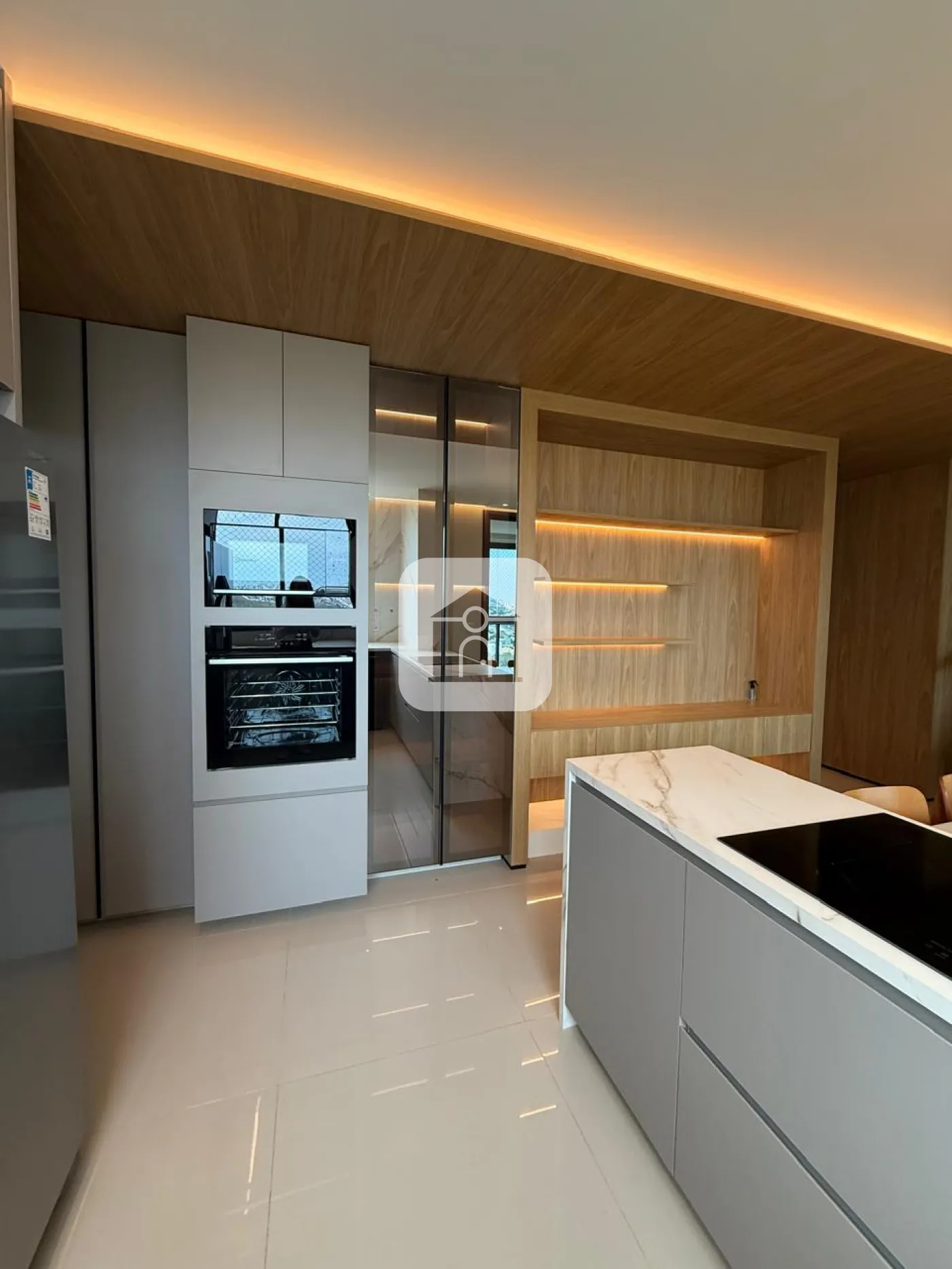 Apartamento com fino acabamento todo mobiliado, com hall de entrada personalizado, sala em ambientes com sofá, tv, 2 ar condicionados centrais, mesa de jantar, sacada gourmet com churrasqueira, cervejeira e cortina de vidro. Cozinha em mármore, com fogão por indução, geladeira duplex, lava louça, triturador e torre quente, Lavanderia com armários e máquina de lavar.