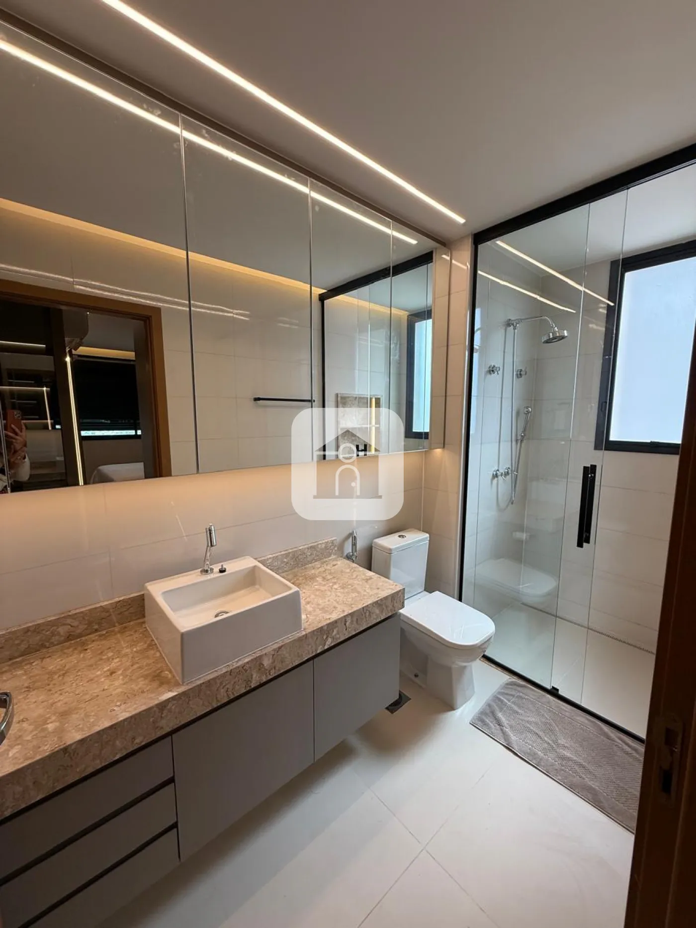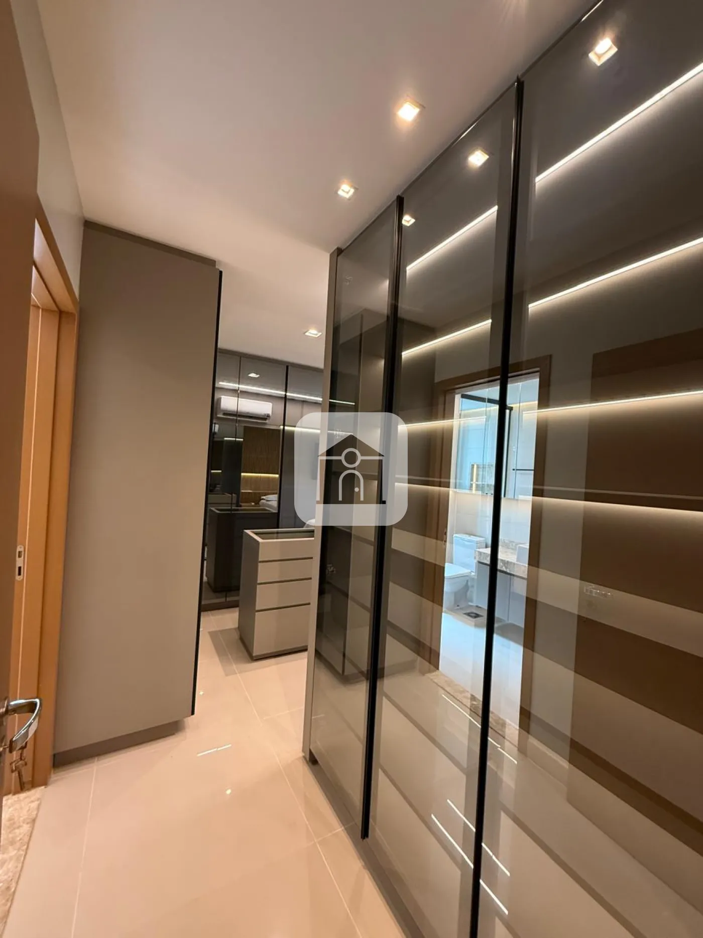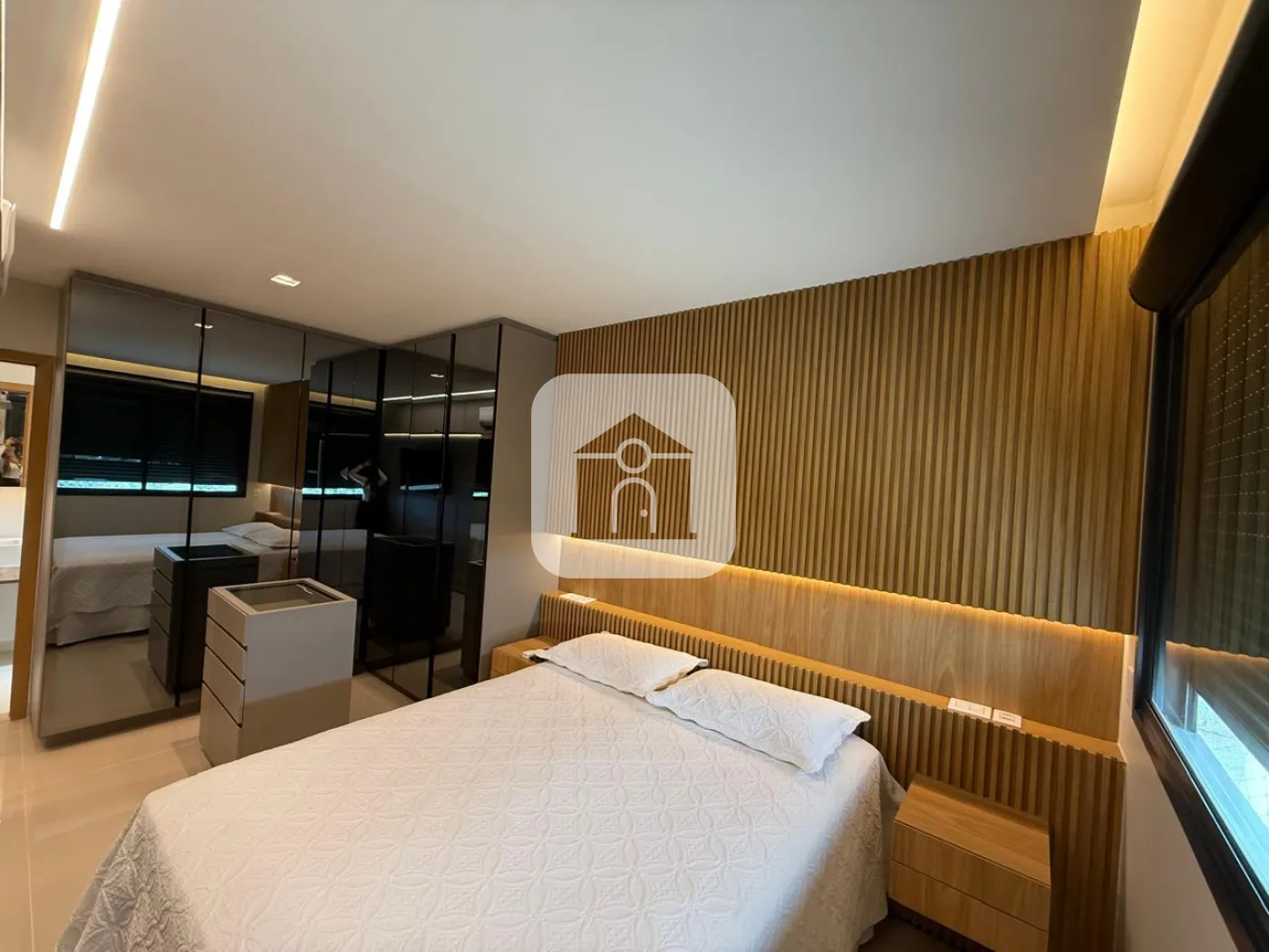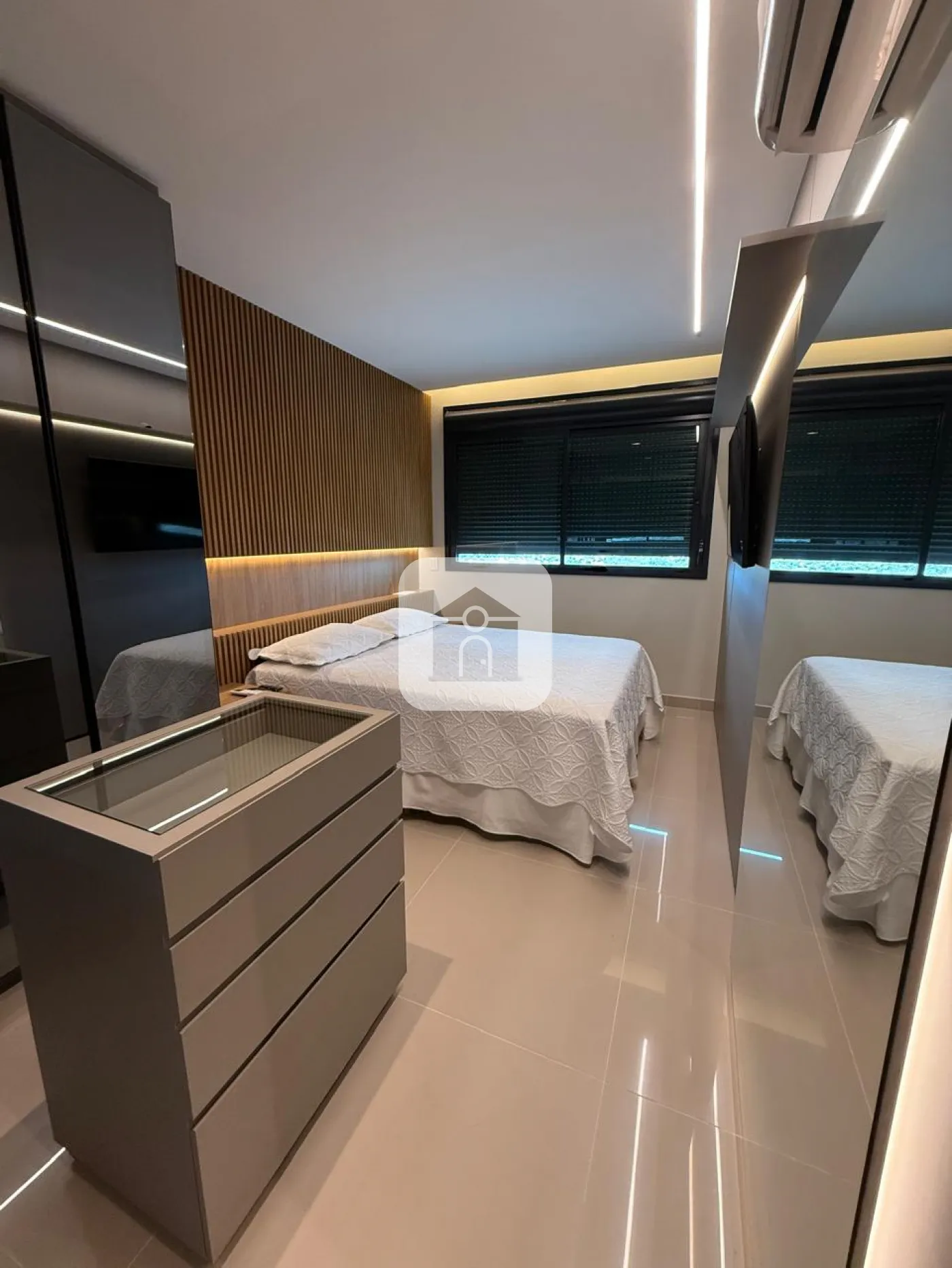 São 3 suítes, todas com ar condicionado, persianas elétricas, suíte principal com cama de casa, armários em todos os quartos.
