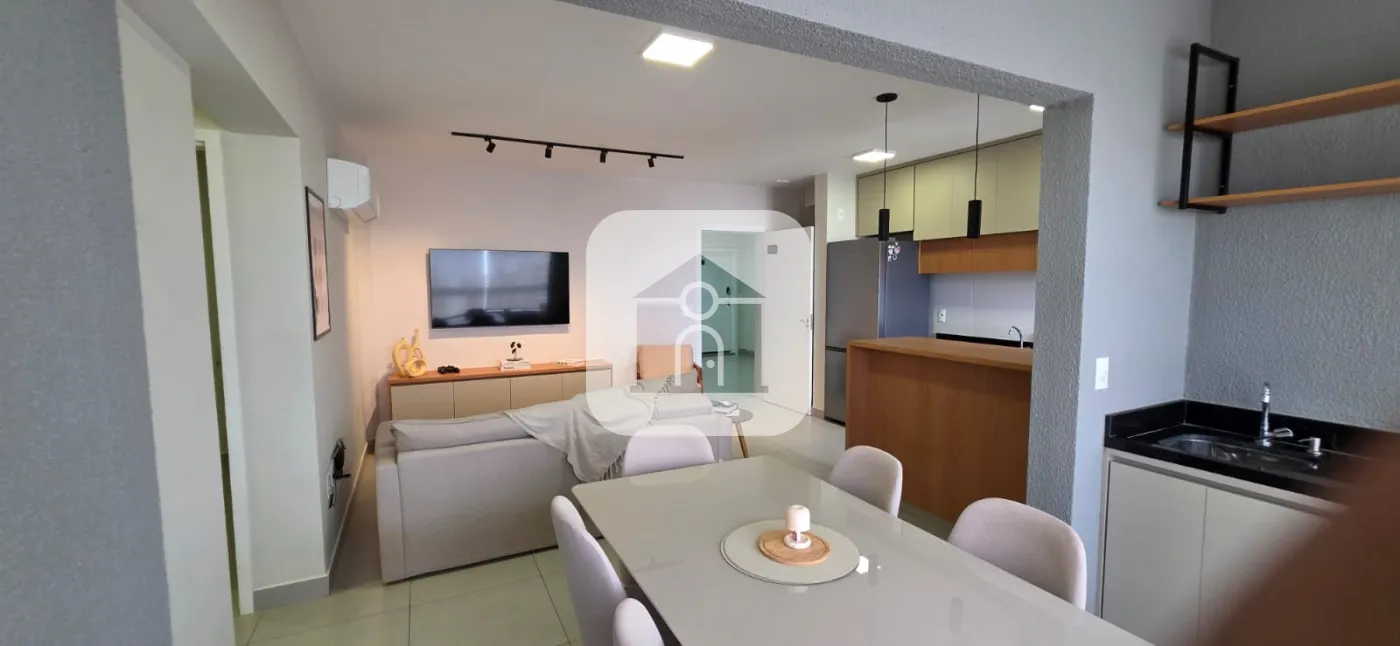 Apartamento com 02 Quartos sendo uma suite com armário sob pia, espelho e box em blindex, closed com armários, banheiro social completo, sala em 02 ambientes com sacada incorporada, coxinha planejada, lavanderia com armários. O Condomínio oferece área de lazer completa com piscina, sauna, brinquedoteca, espaço gourmet, academia, cowork , office reunião, longe, mirante e fire pit, mini mercardo e bicicletario, semi mobiliado com sofá, mesa com 06 cadeiras , painel de TV, ar códicionado na sala e na suite , smart tv . Piso : Porcenalato.