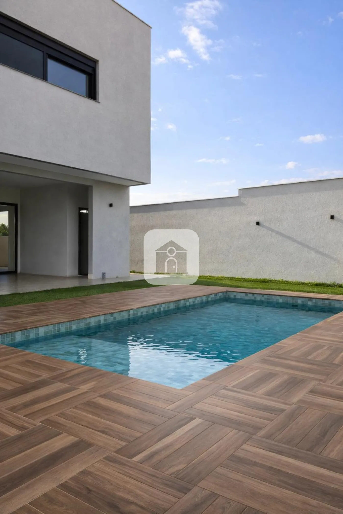 No primeiro piso, o imóvel conta com hall de entrada, que pode ser utilizado como sala de estar. Sala de TV e sala de jantar formam um ambiente único, semi-integrado à cozinha com ilha gourmet. Os ambientes se conectam à generosa varanda com churrasqueira e à área externa com piscina aquecida e faixa gramada.