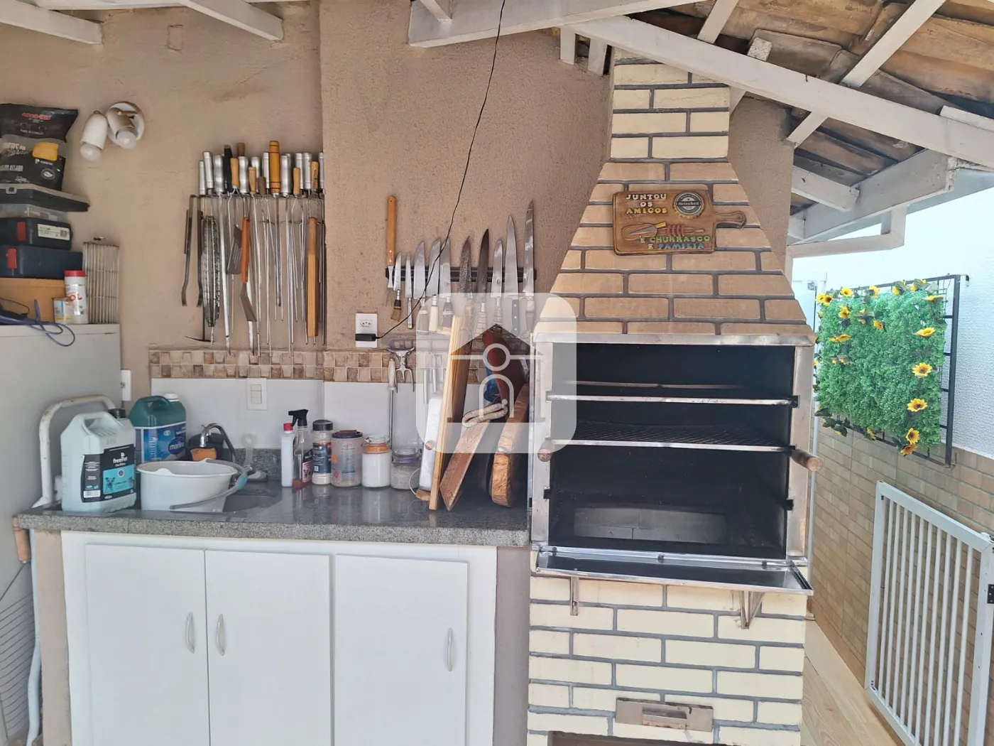Casa com 03 quartos sendo 02 com armário sendo 01 suíte com ar condicionado, banheiro suíte com box e armário sob pia, sala, sala de jantar, cozinha com armário, área de serviço, área de churrasqueira, ofurô, garagem 02 carros, portaria virtual, piscina, salão de festa, quadra esportiva, playground