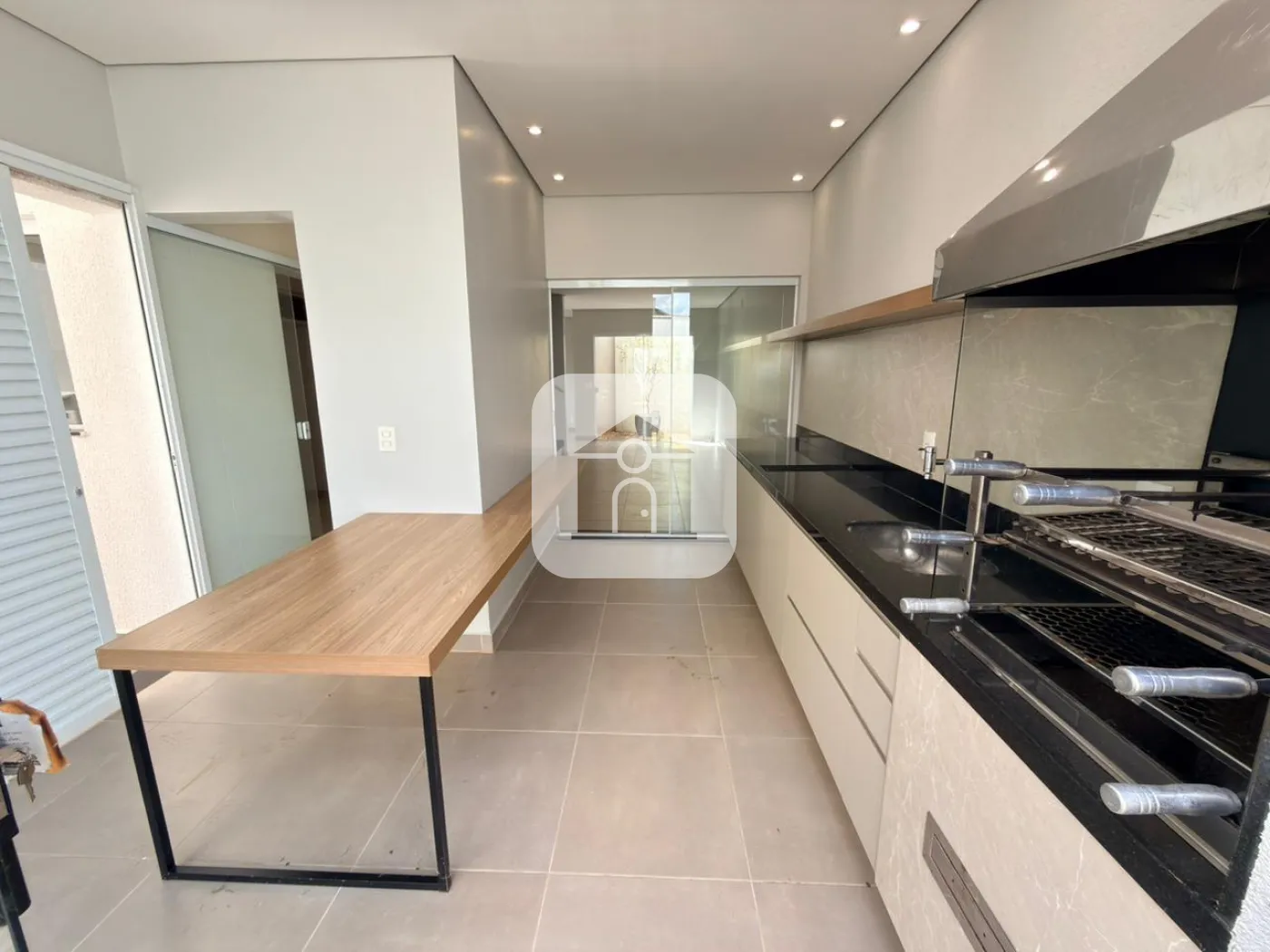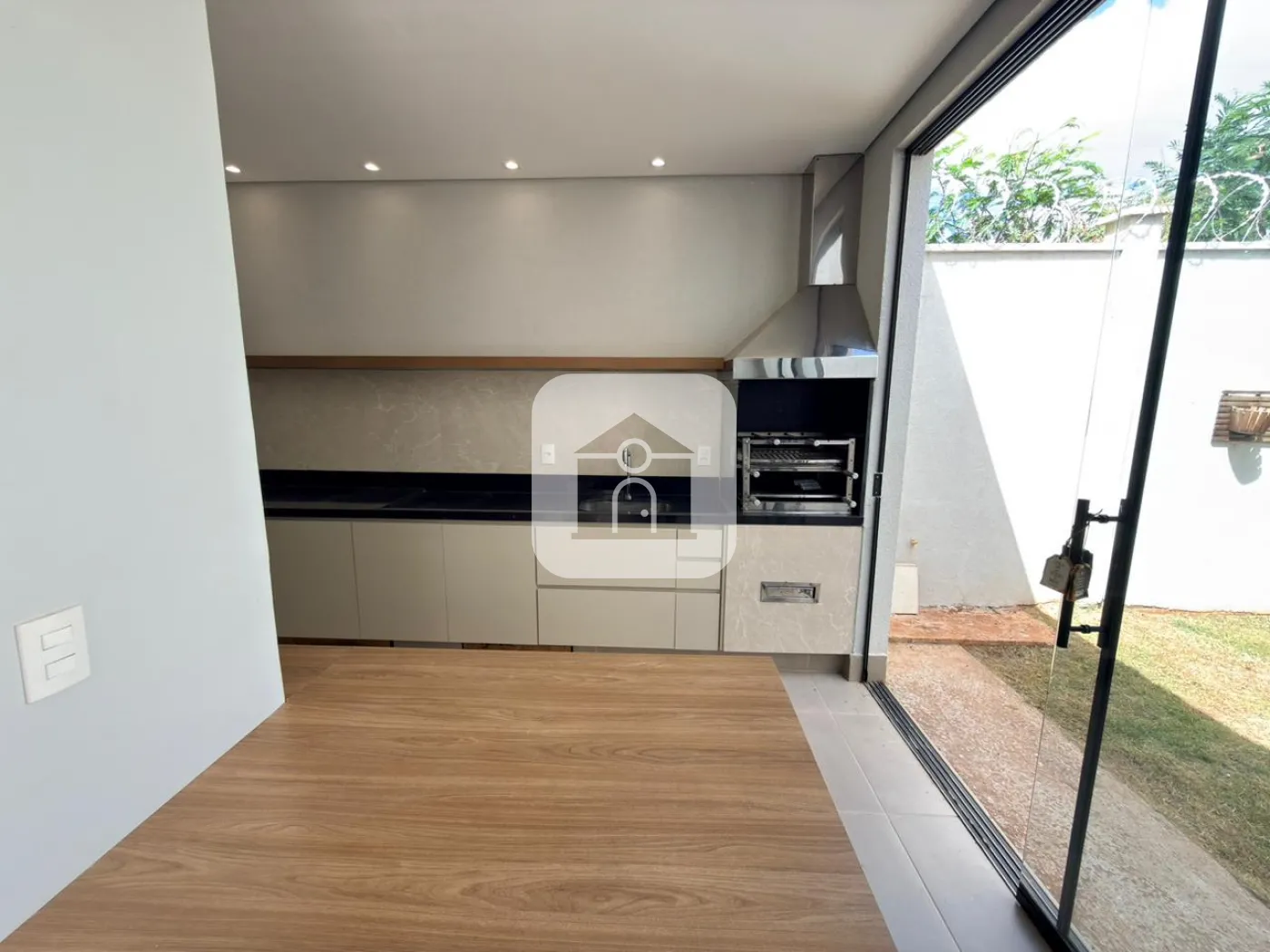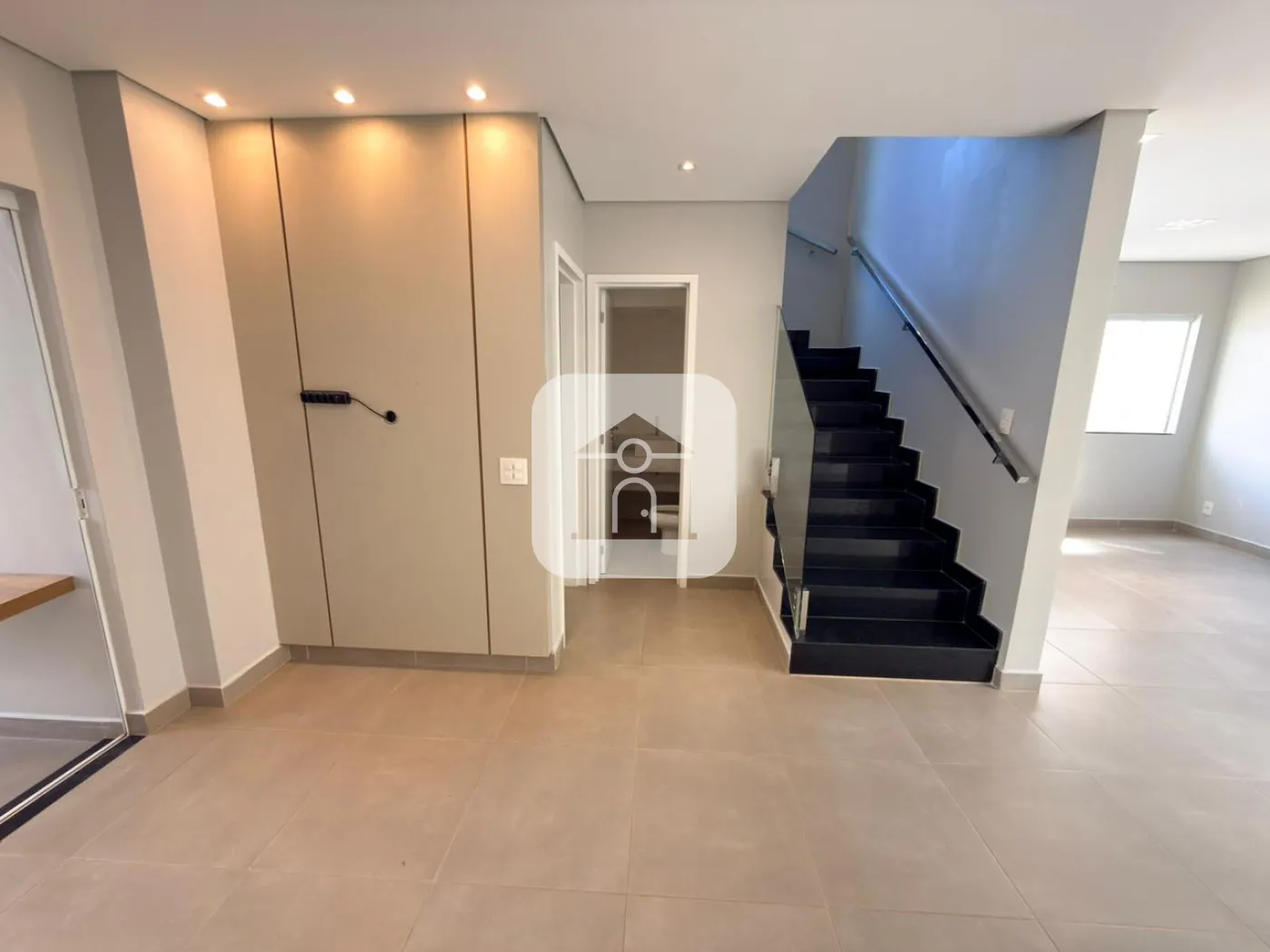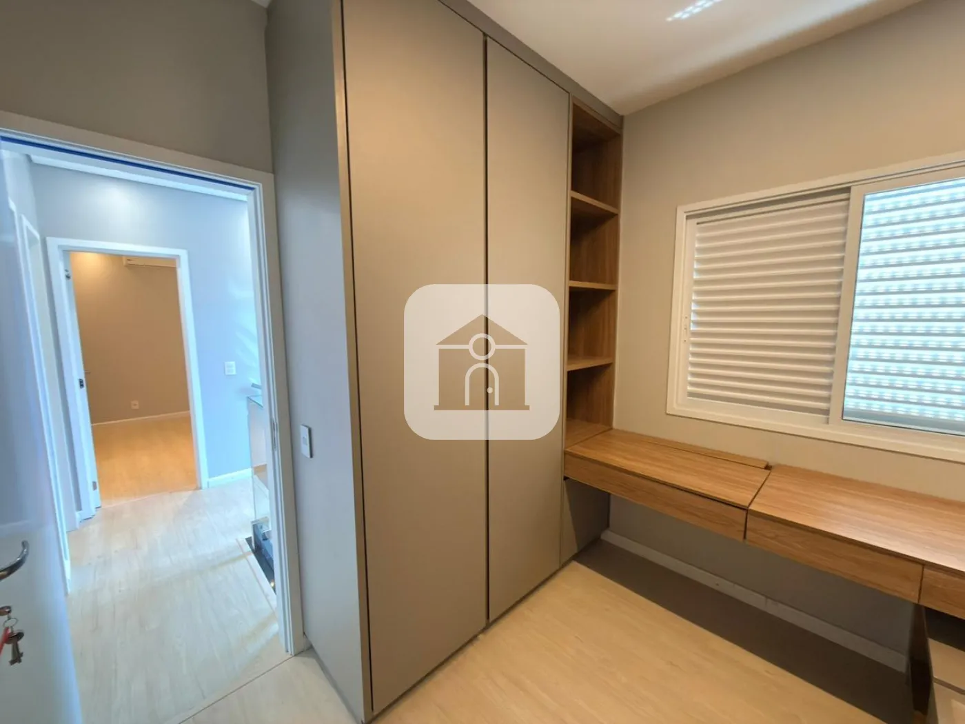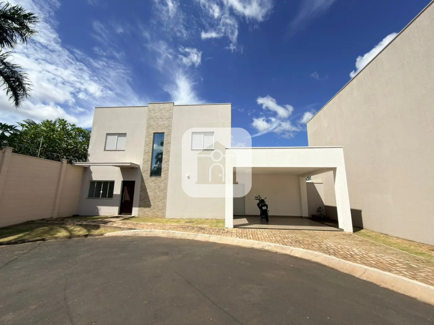 Casa estilo sobrado em condomínio fechado na região Sul de Uberlândia disponível para locação, medindo aproximadamente 120m², plata diferencia em vista de outras casas no mesmo condomínio, pavimento térreo do imóvel é composto por sala ampla em 02 ambientes, jardim de inverno, lavabo, área gourmet com churrasqueira, armários, e bancada; cozinha completa com armários e cooktop de indução, área externa com gramado, e duas vagas de garagem cobertas. Pavimento superior conta com 03 quartos sendo 01 suíte, todos com armários planejados, dois quartos contam com ar condicionado, e banheiro social com box e armários. Condomínio conta com portaria 12H, piscina, salão de festas, playground, e espaço fitness.