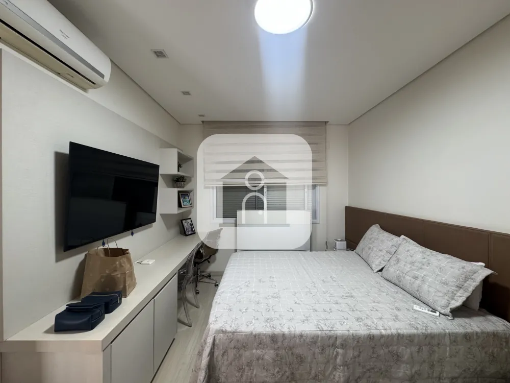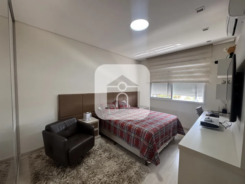 Casa em condomínio fechado estilo sobrado com aprox. 310 metros de construção e 02 vagas de garagem 1 piso: sala em 02 ambientes com ar condicionado e pé direito duplo, escritório com ar condicionado (podendo ser revertido em 4* suite), cozinha planejada, banheiro social com armário sob a pia e box blindex, lavanderia com armário, varanda gourmet com churrasqueira, depósito, piscina aquecida com ofurô e cascata, ducha. 2 piso: 03 quartos suítes com armário embutido e ar condicionado sendo 01 com closet e sacada, amplo terraço. Condomínio com portaria 24hrs, academia, quadra esportivas, playground e bosque.