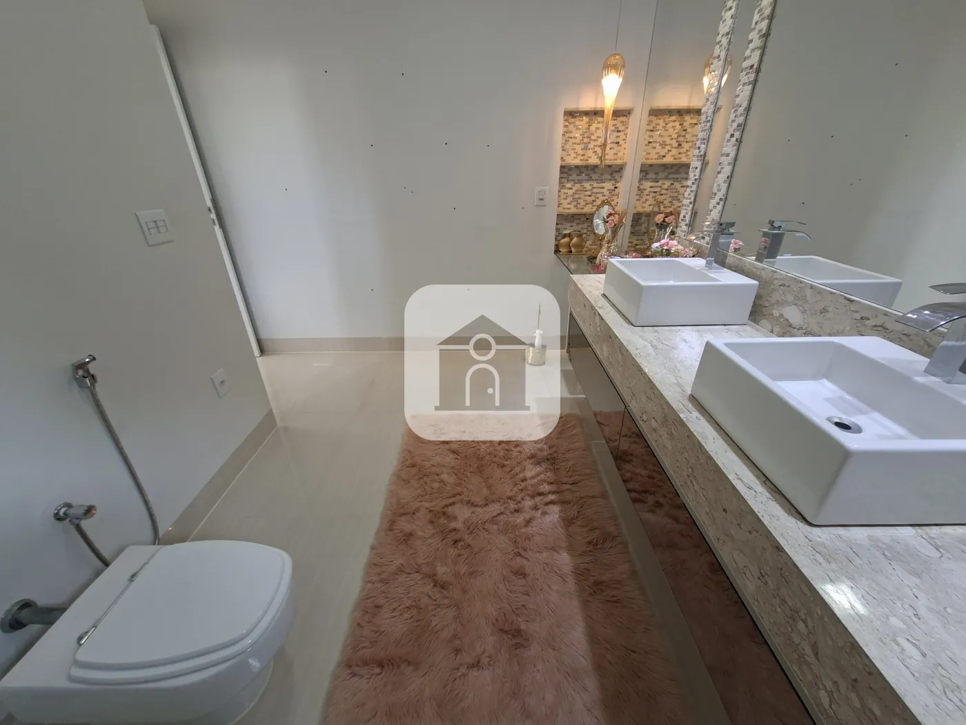 Casa com 03 suítes sendo 02 com armário, sala de estar, sala de Tv, lavabo, cozinha com armário e cooktop, área de serviço com banheiro, quintal, despensa, garagem 02 carros.