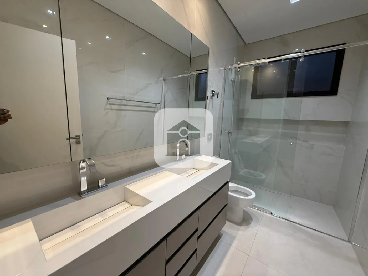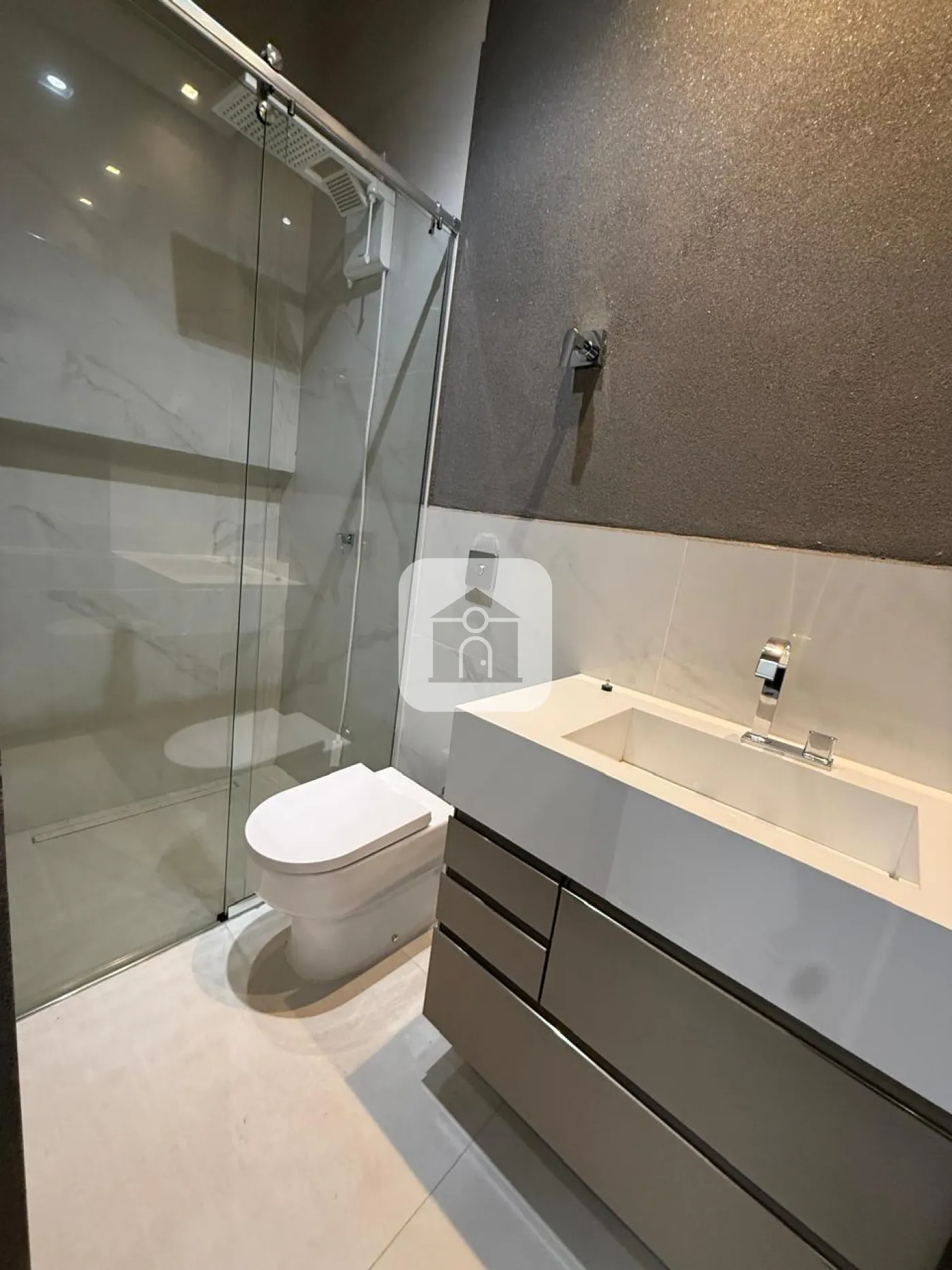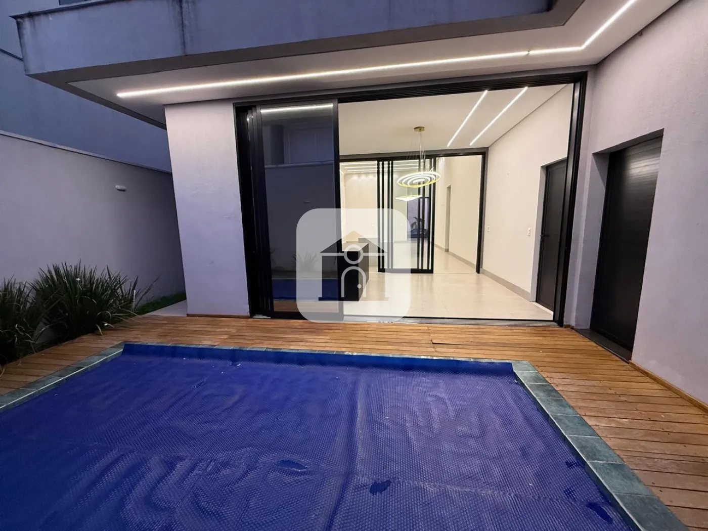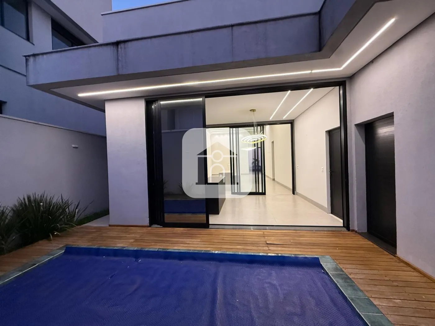 Casa em condomínio fechado, possui sala de visitas em 02 ambientes com pé direito duplo, escritório, lavabo, hall para 03 suítes com armários, box, espelho e armários na pia, cozinha toda montada, forno e micro-ondas e balcão integrada com varanda gourmet com churrasqueira, piscina e ducha, 02 vagas de garagem para carros, energia fotovoltaica, área construída 241m², área total 411m².