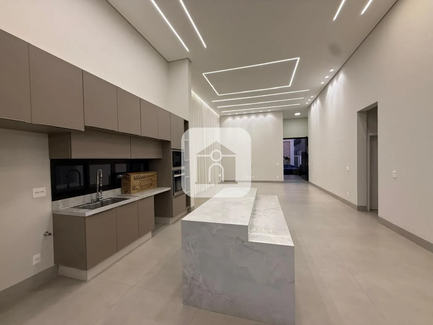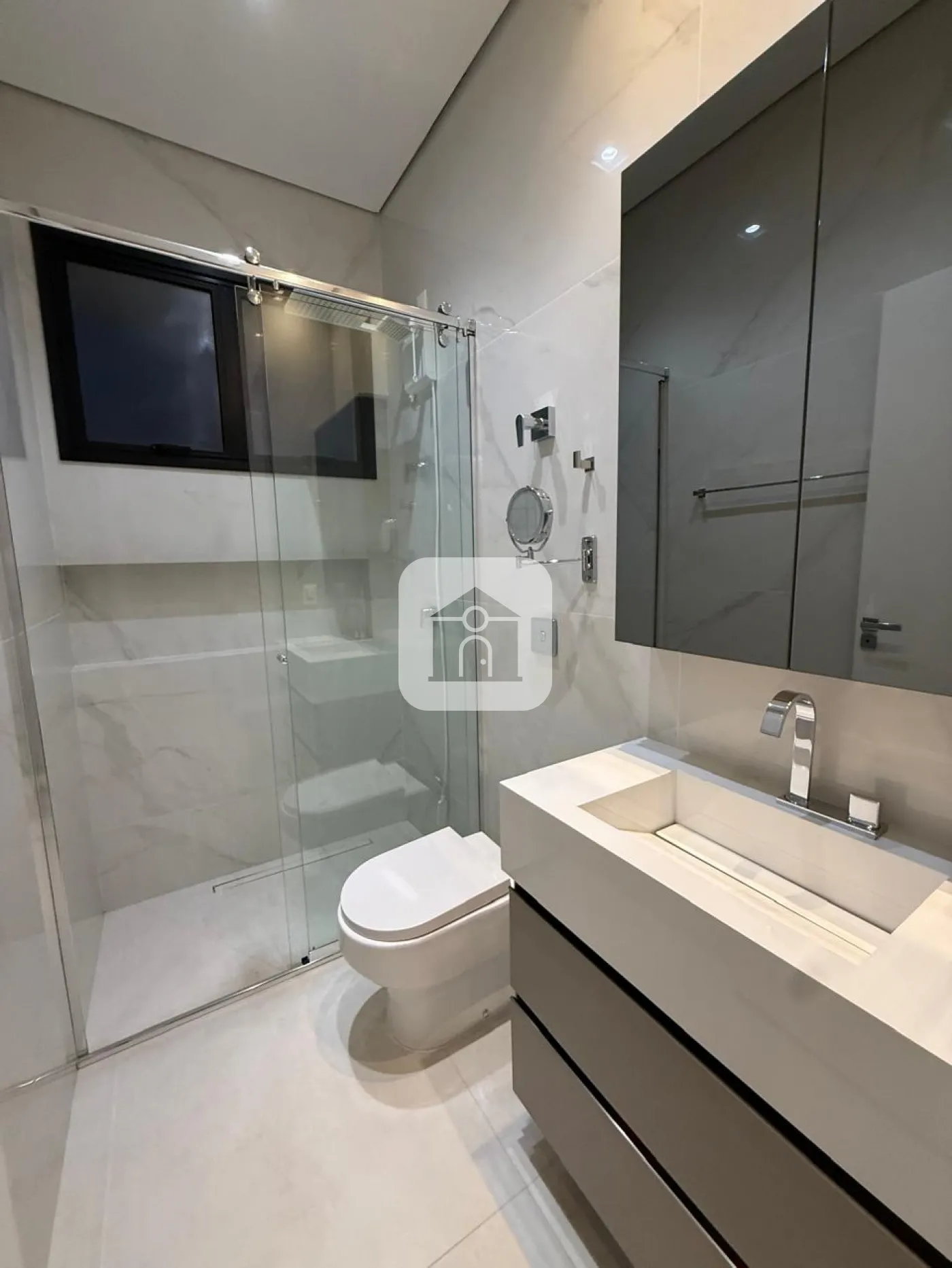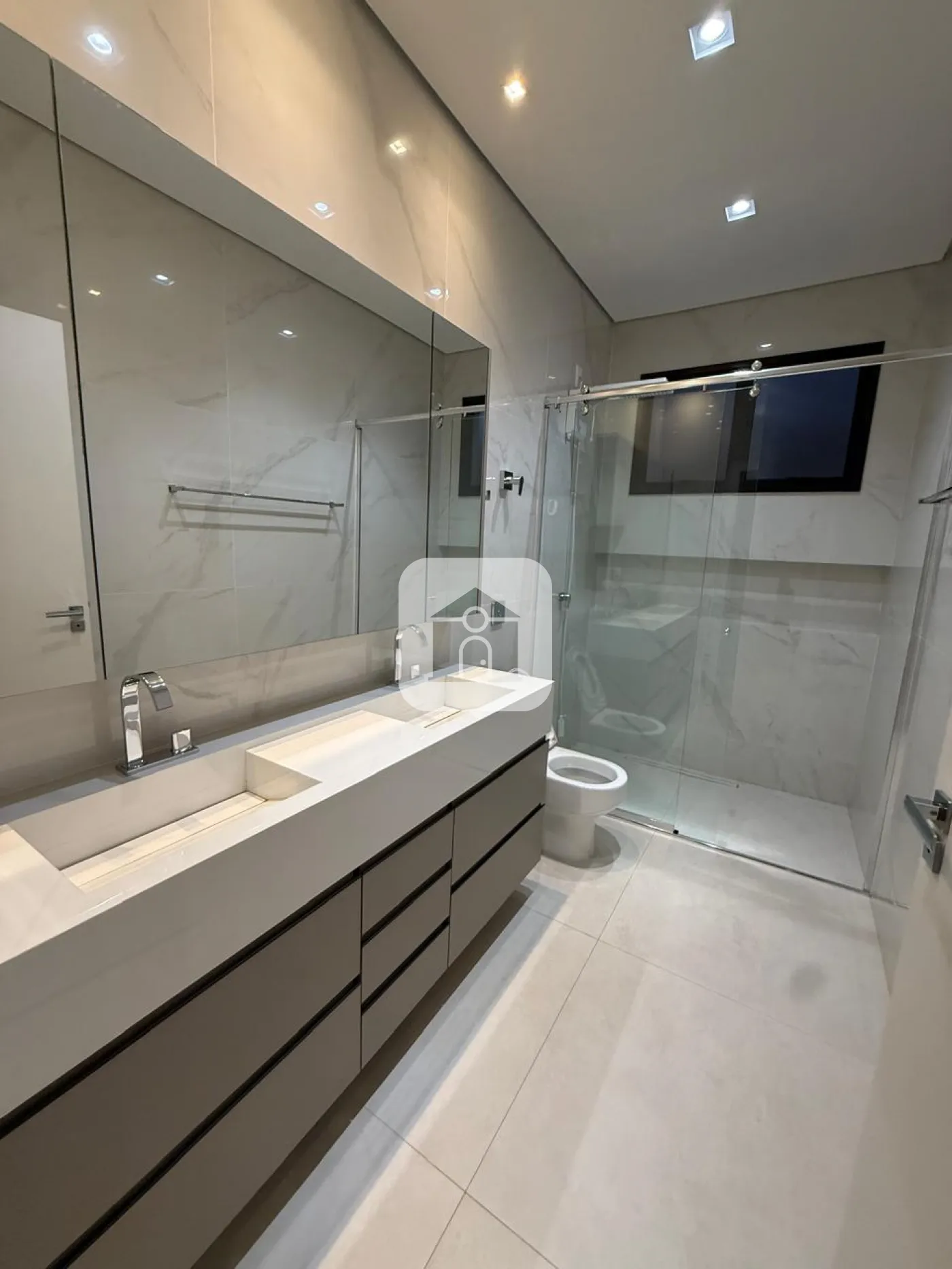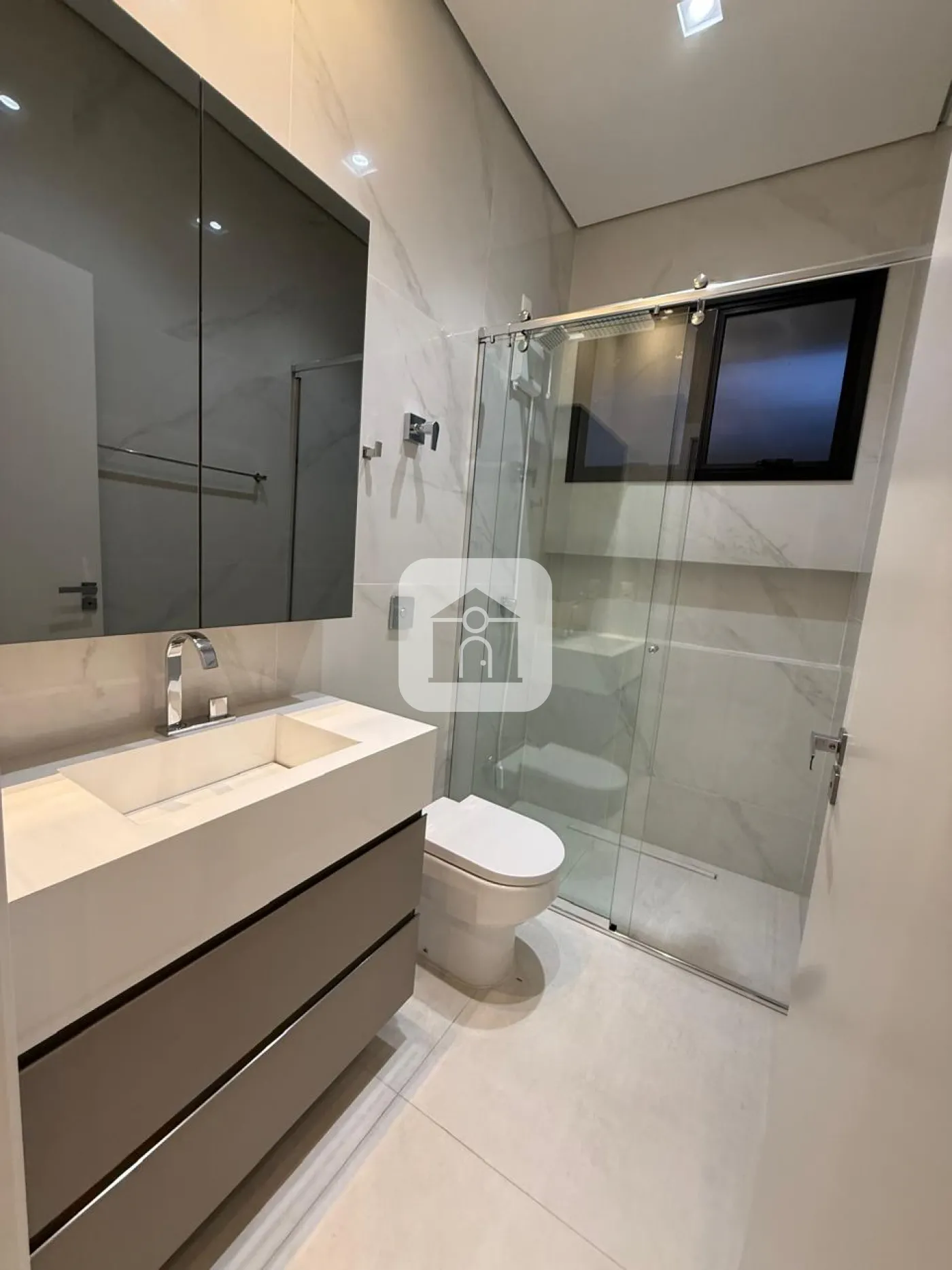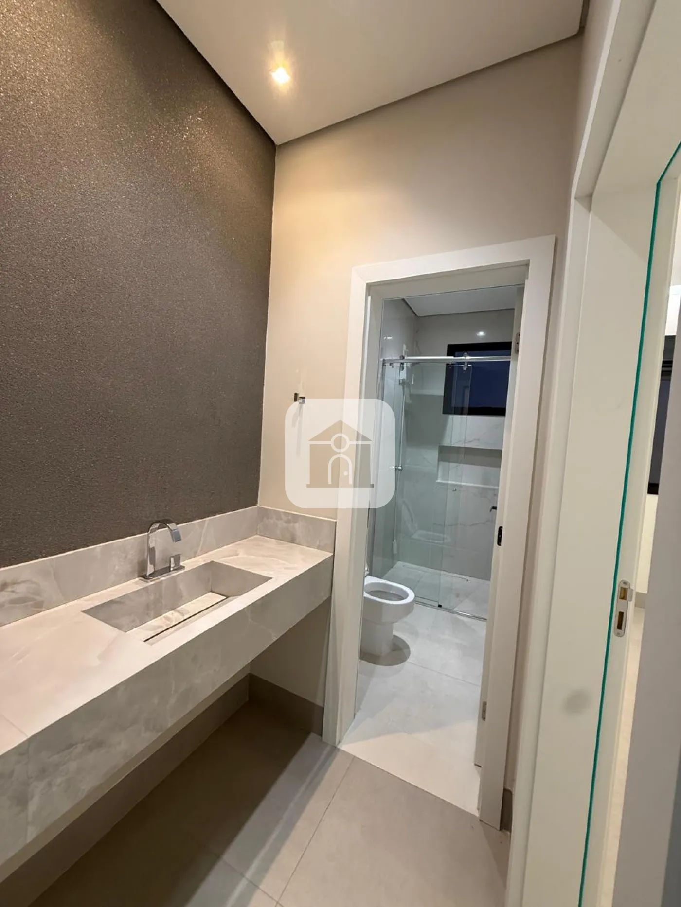Casa em condomínio fechado, possui sala de visitas em 02 ambientes com pé direito duplo, escritório, lavabo, hall para 03 suítes com armários, box, espelho e armários na pia, cozinha toda montada, forno e micro-ondas e balcão integrada com varanda gourmet com churrasqueira, piscina e ducha, 02 vagas de garagem para carros, energia fotovoltaica, área construída 241m², área total 411m².