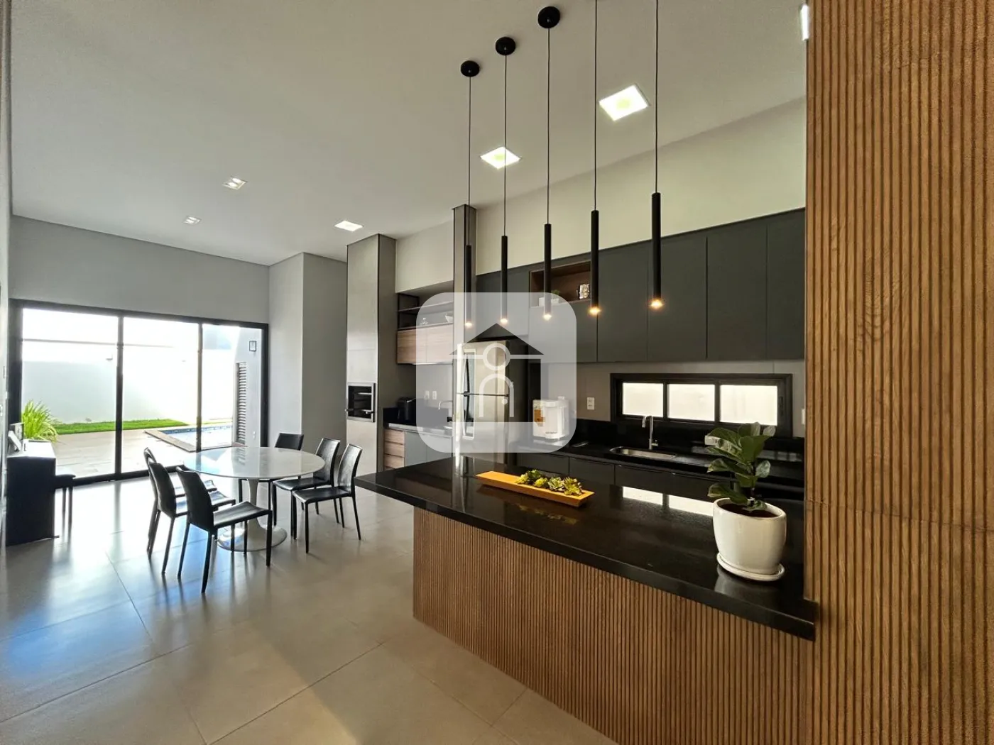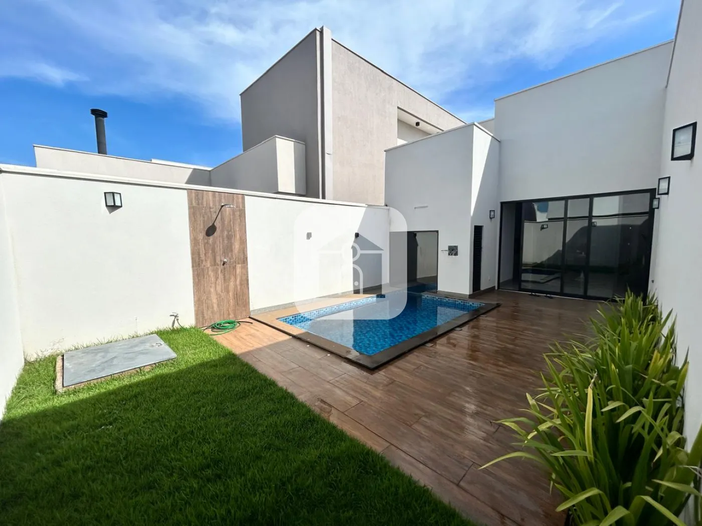 Casa para locação com 04 suítes, ambientes integrados com sala de estar, jantar, cozinha com ilha e churrasqueira. Área de lazer com piscina aquecida e espaço integrado para sauna, lavanderia ampla, depósito para utensílios e materiais, garagem para 04 veículos (02 cobertos + 02 descobertos). Energia fotovoltaica e aquecimento solar