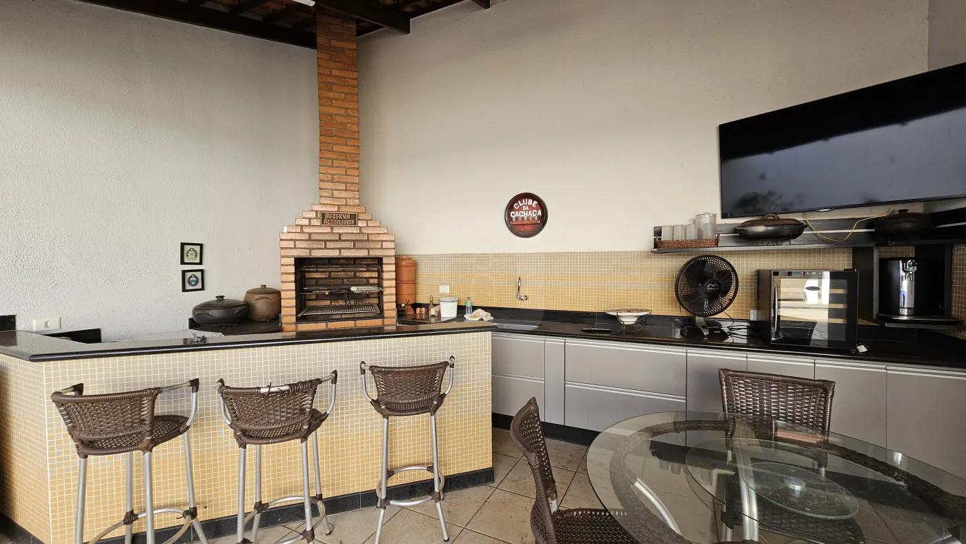 Excelente casa com aproximadamente 180 m² de área construída em um terreno de 360 m². Sendo portão e porteiro eletrônico, cerca elétrica, câmeras de segurança e 01 vaga de garagem para 02 carros. Sala em dois ambientes com sacada, sala de jantar, 03 quartos com armários, sendo 02 com ar condicionado, sendo 01 suíte com armário sob pia, box blindex, chuveiro e banheira de hidromassagem. Cozinha toda montada de armários, área externa com piscina, área gourmet, sauna, banheiro externo, 01 quarto semi suíte com armário embutido e ar condicionado, canil e área de serviço.