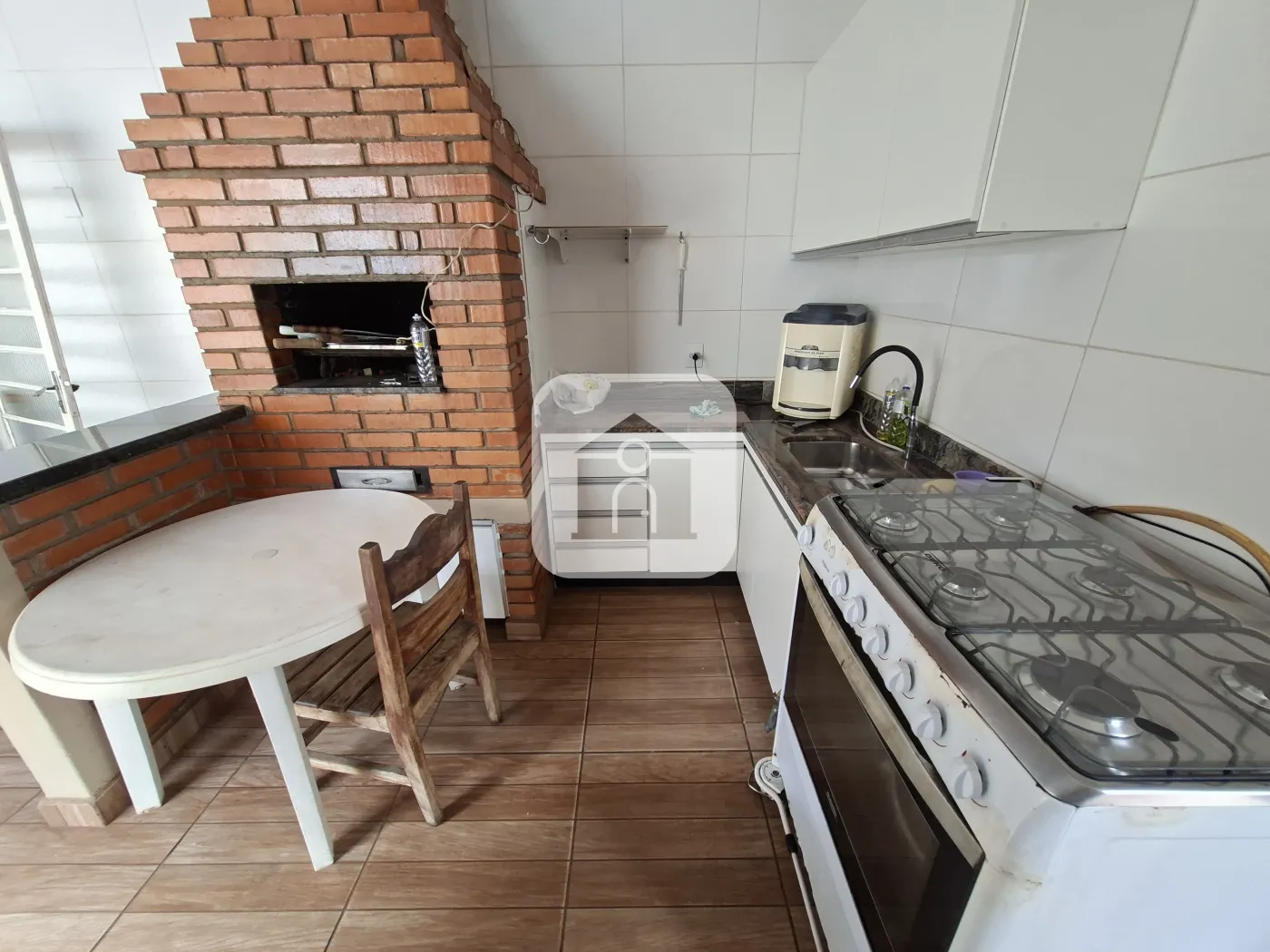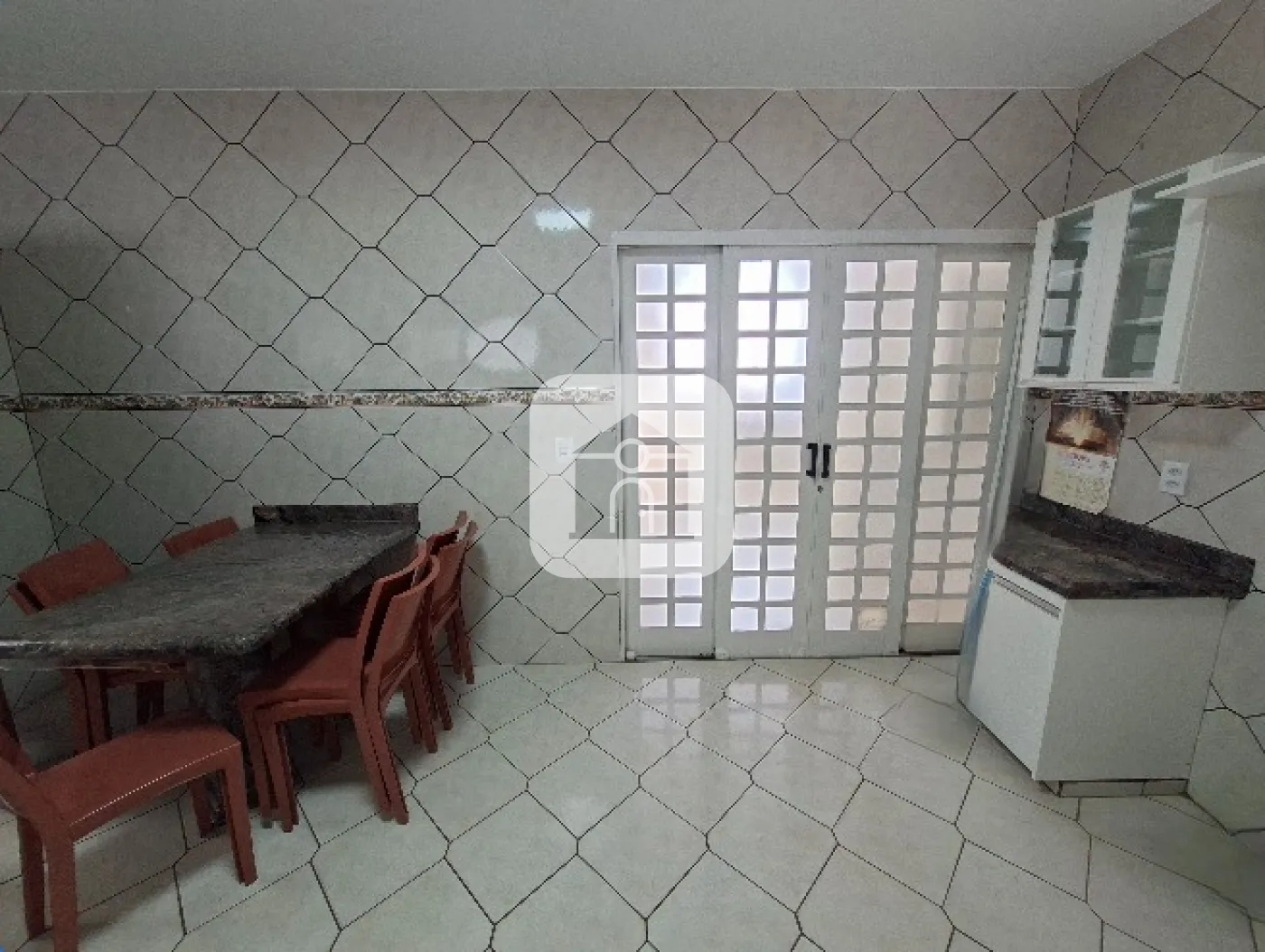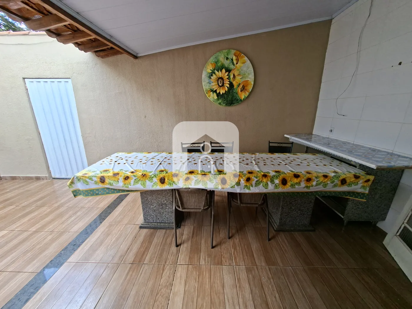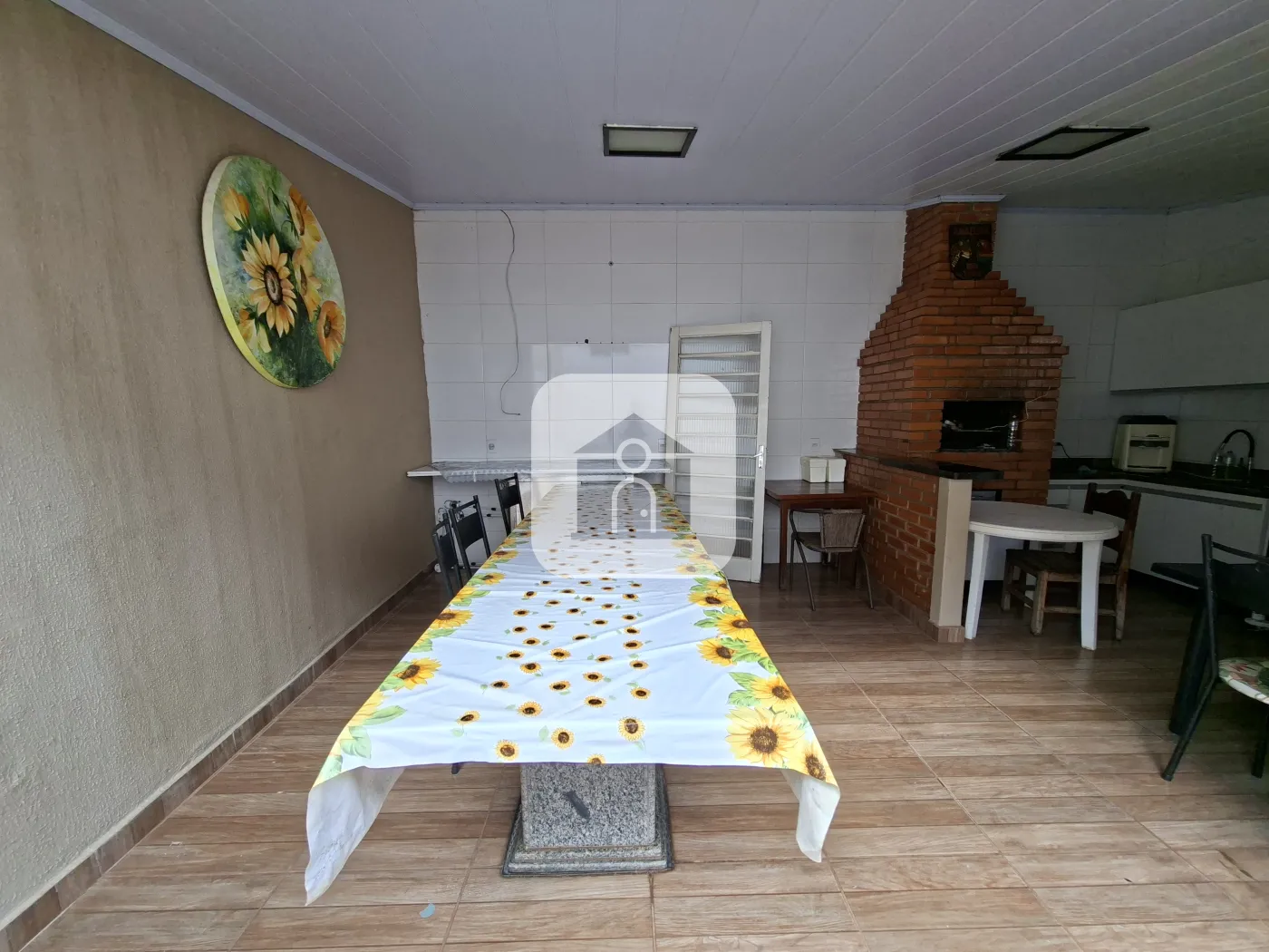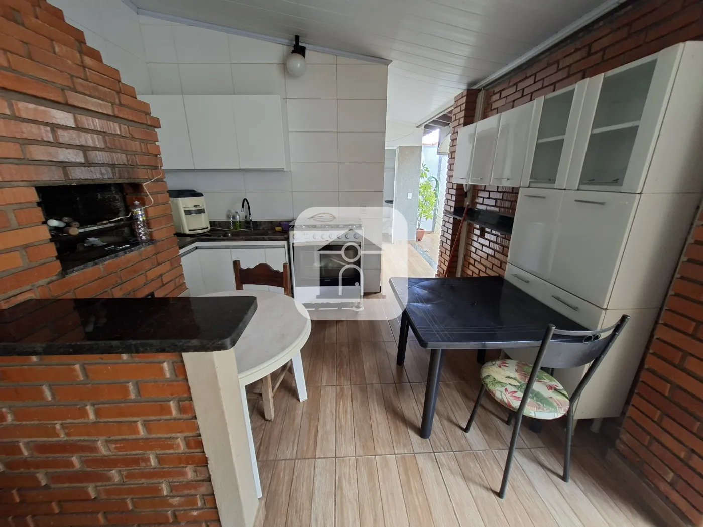 Casa com Portão Social pequeno , e Portão Eletrônico p/ garagem para 02 veículos , Sala ampla em 02 ambientes com clara bóia (mesa em madeira para 8 lugares com cadeiras), cozinha ampla c/armários (Cooktop , mesa fixa em pedra) lavanderia externa com armários , banheiro social com box e armário , 03 Quartos sendo 1 suite ( suite com banheira de hidromassagem e armário ) , todos os quartos climatizados com ar-condicionado . Área no fundo com mais 1 Quarto climatizado com ar-condicionado, 1 lavabo , área gourmet com churrasqueira armários ( mesa grande fica para até 8 lugares ), acesso ao terreno arborizado do lado .
