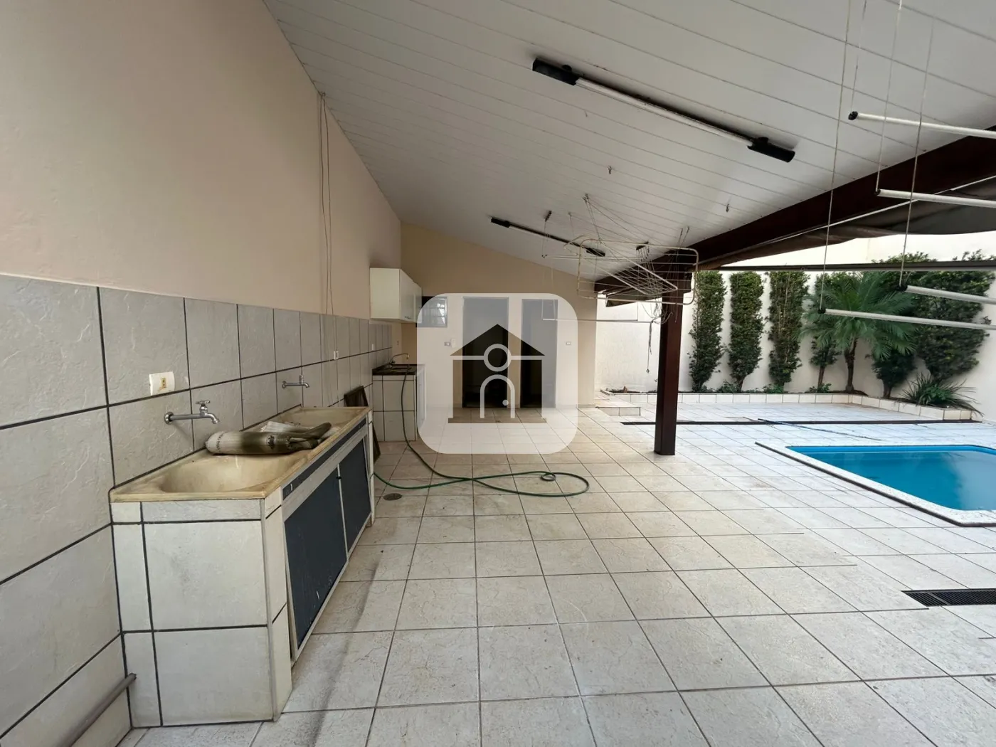 Casa com 03 suítes sendo 02 com armários sendo 02 ar condicionado, banheiro suíte com box vidro e armário sob pia, sala de Tv, sala de estar com ar condicionado, 02 lavabo, copa, cozinha com armário, dispensa, área de serviço com banheiro, quintal, piscina, garagem 02 carros.