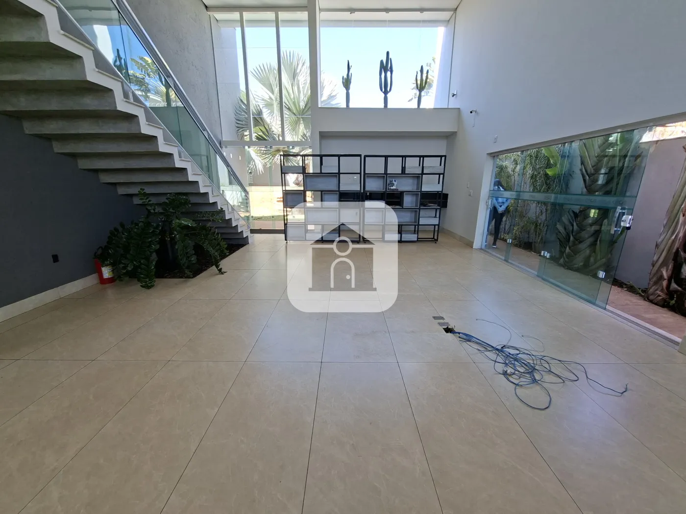 1º piso: Ampla sala com pé direito duplo, espaço coffee, lavabo, 01 sala de reunião com CPD os dois espaços com ar condicionado, 01 sala de trabalho com ar condicionado, edícula com 01 almoxarifado, 01 depósito, refeitório externo, banheiro masculino, banheiro feminino, estacionamento 04 carros