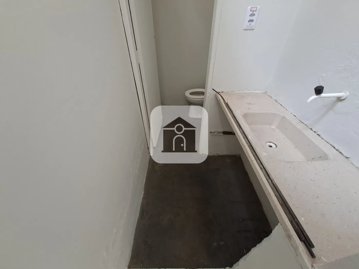Cômodo Comercial com aprox. 30 m² piso cerâmica, laje e uma porta de enrolar, copa e banheiro