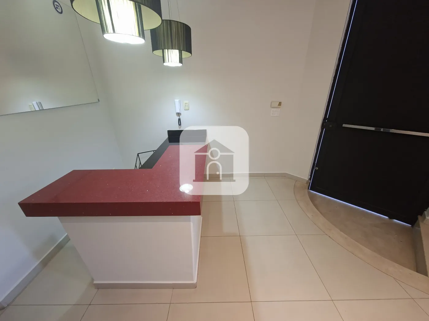 Sala recepção com bancada e granito, 01 sala de estúdio, 01 sala de escritório com armário, depósito, banho social com espelho e box Blindex, hall com armário, alarme e câmera. piso porcelanato. Aprox. 25,50m²