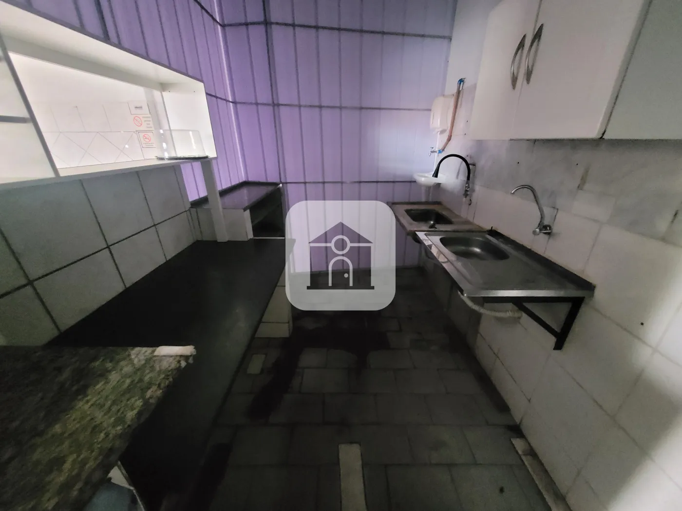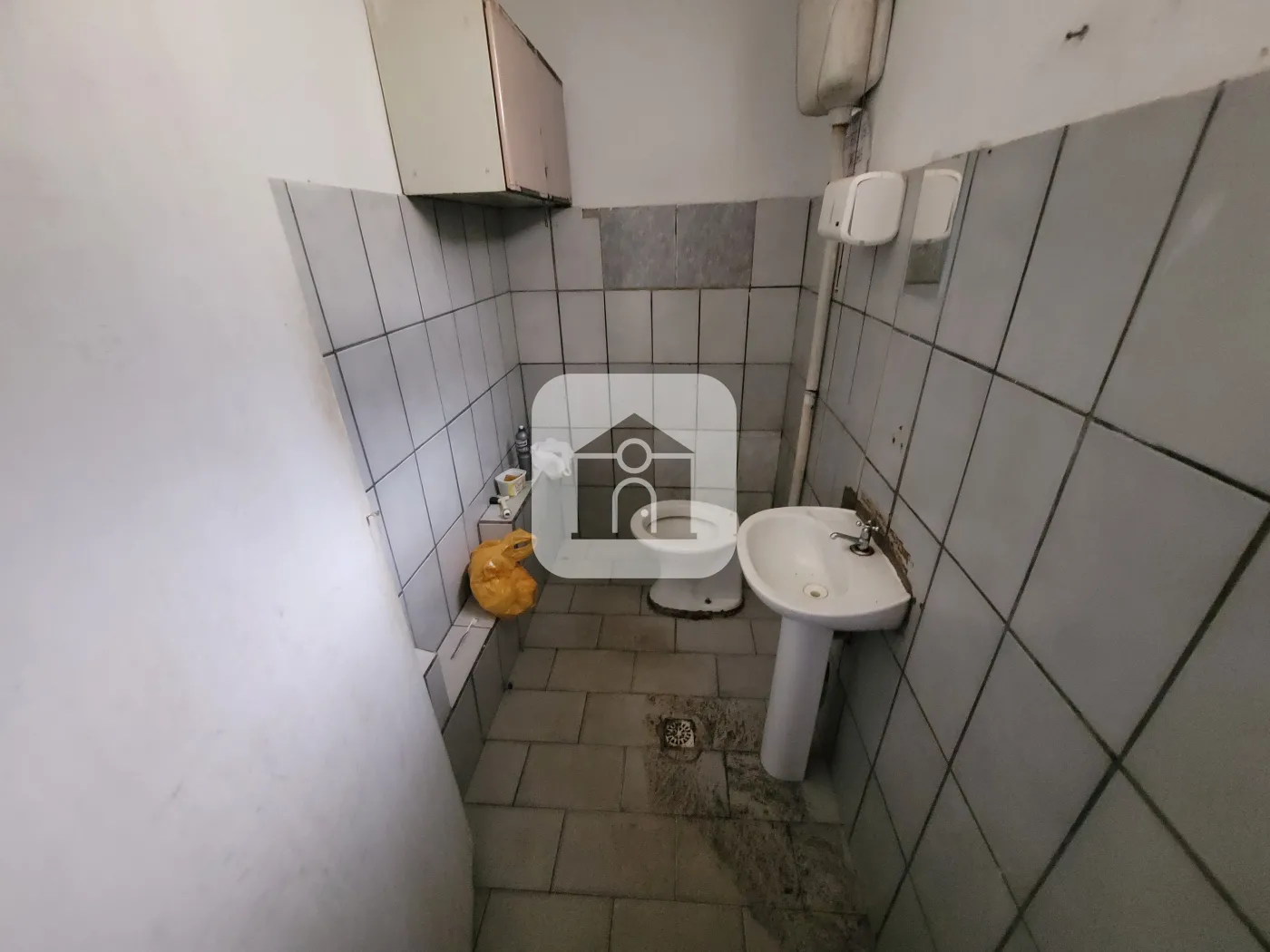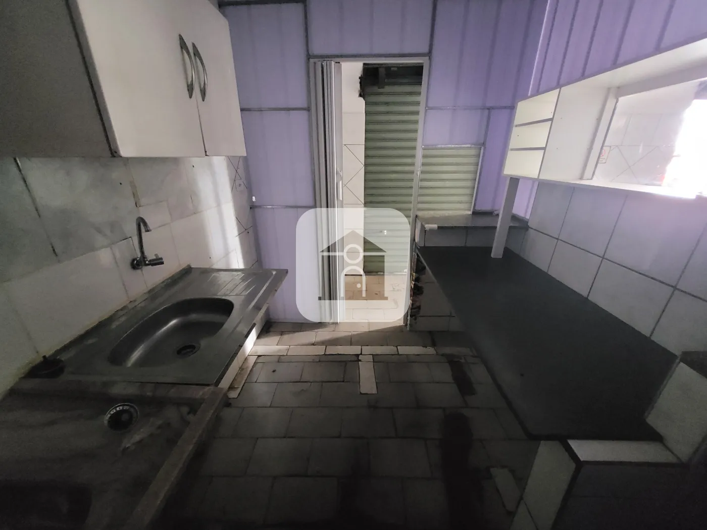 Cômodo com 02 portas de enrolar, pia, Banheiro.