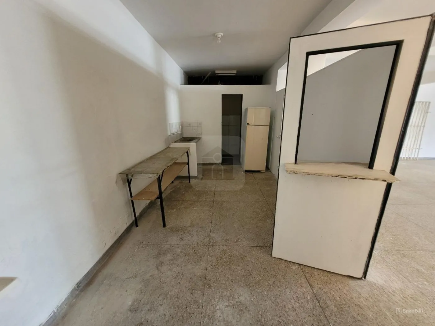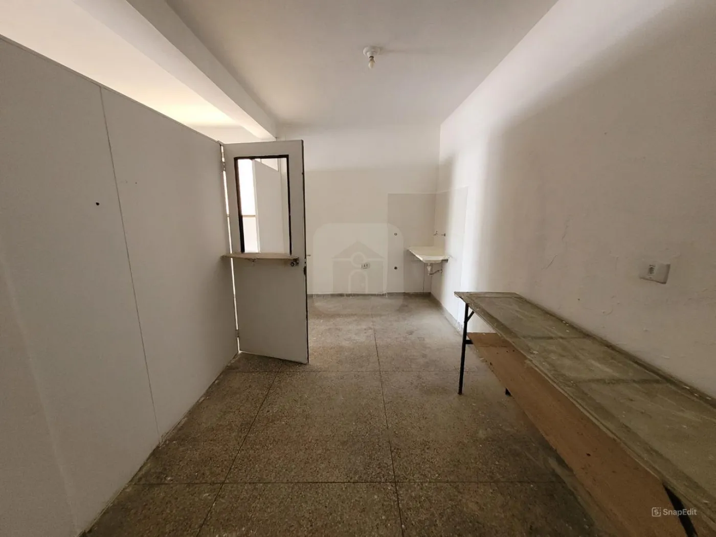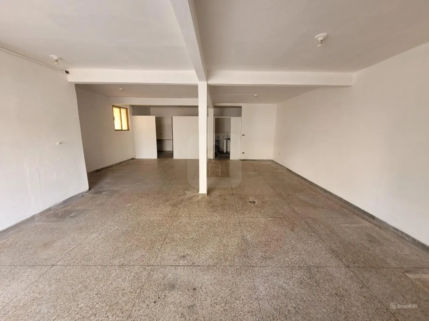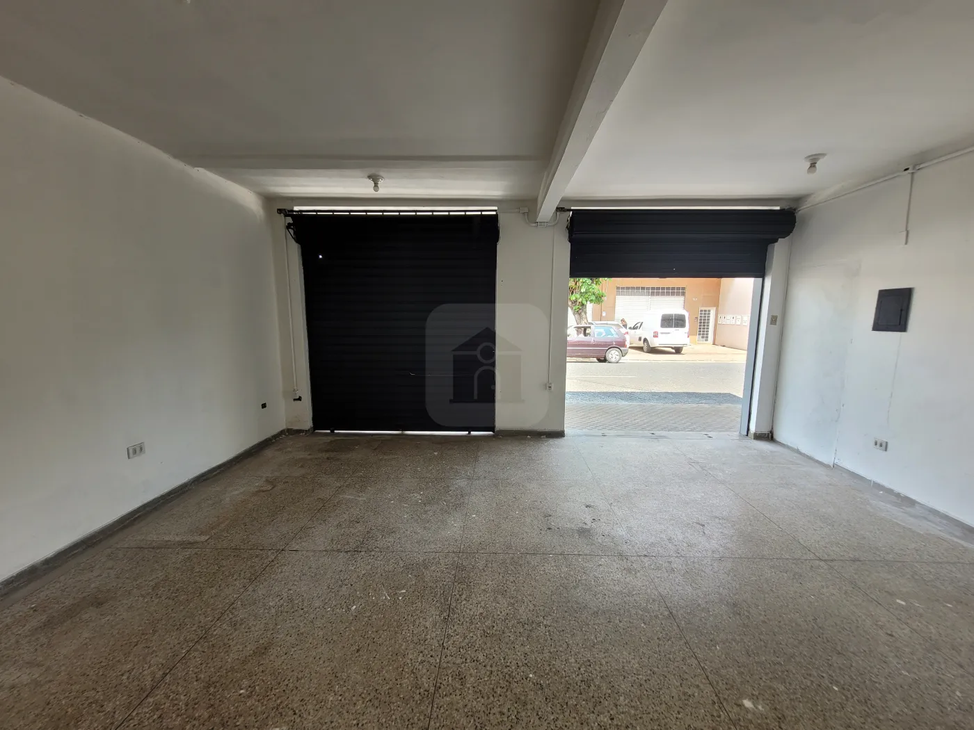 Cômodo comercial com duas portas de aço, cozinha e banheiro, piso em granitina, pintura nova, aprox. 87m²