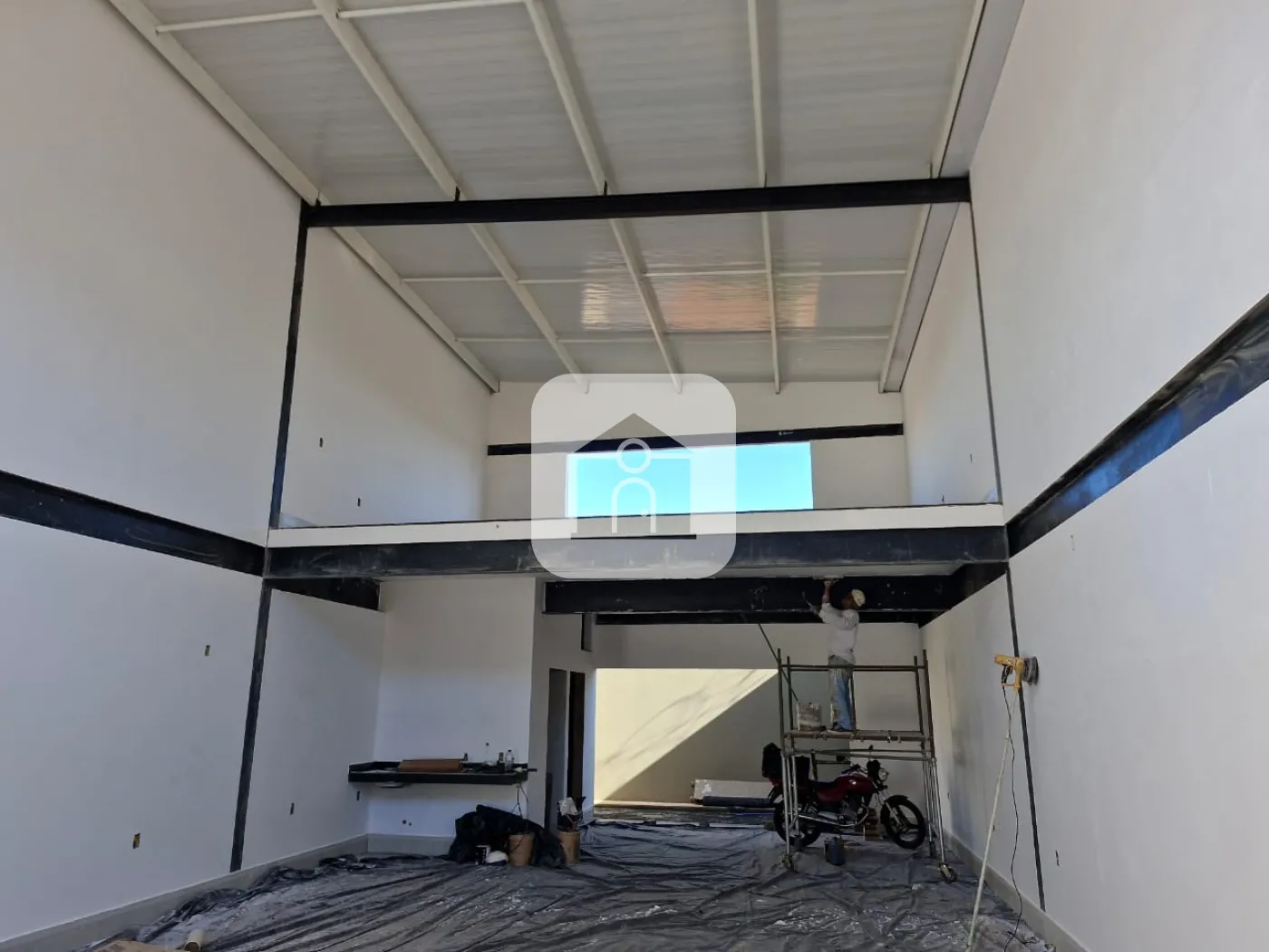 Loja comercial primeira locação, com 150 metros, pé direito duplo, telhado acústico e térmico, portas automatizadas, estacionamento frontal, dois banheiros, copa, 100 metros parte térrea, 50 metros de mezanino.