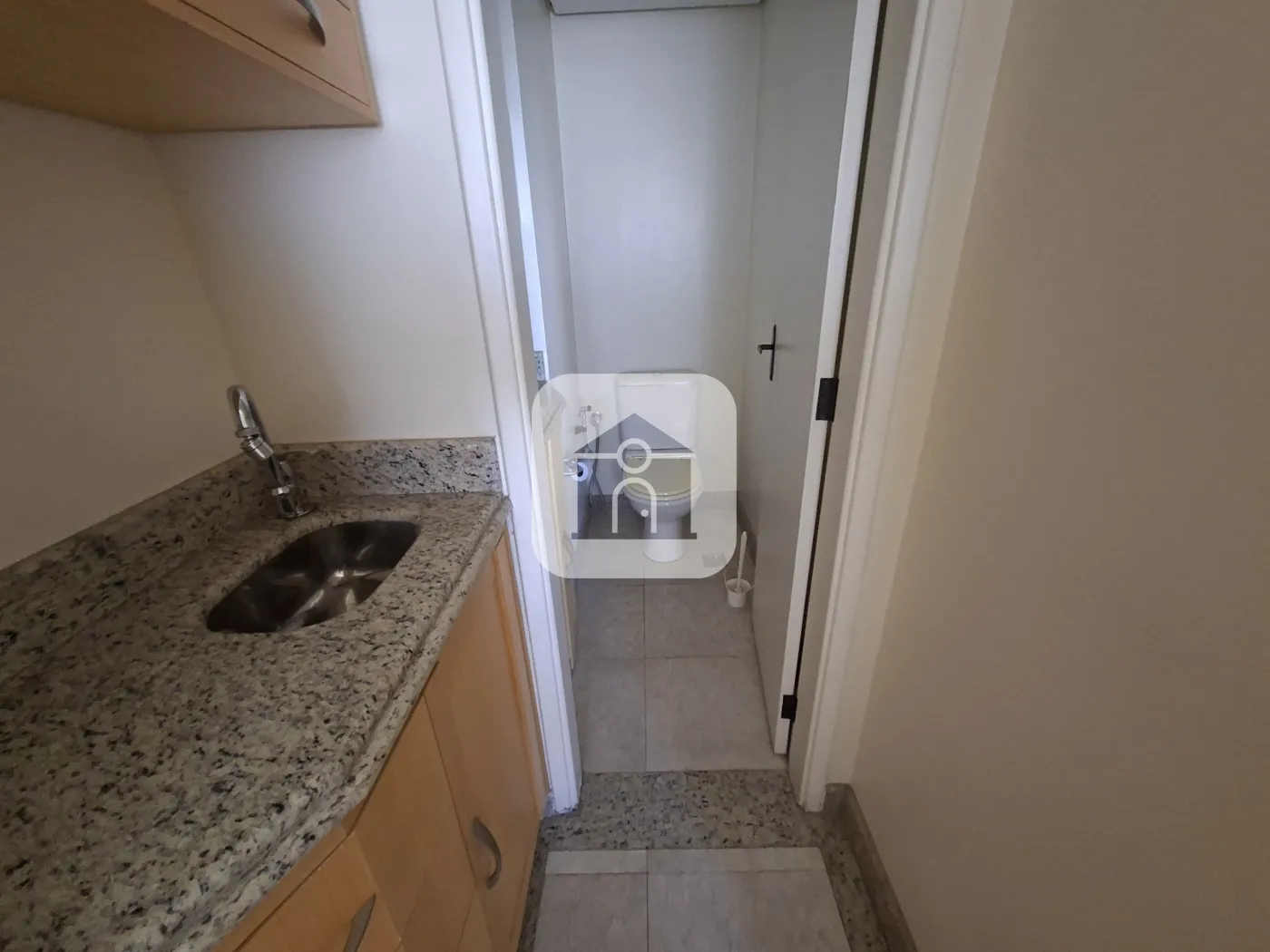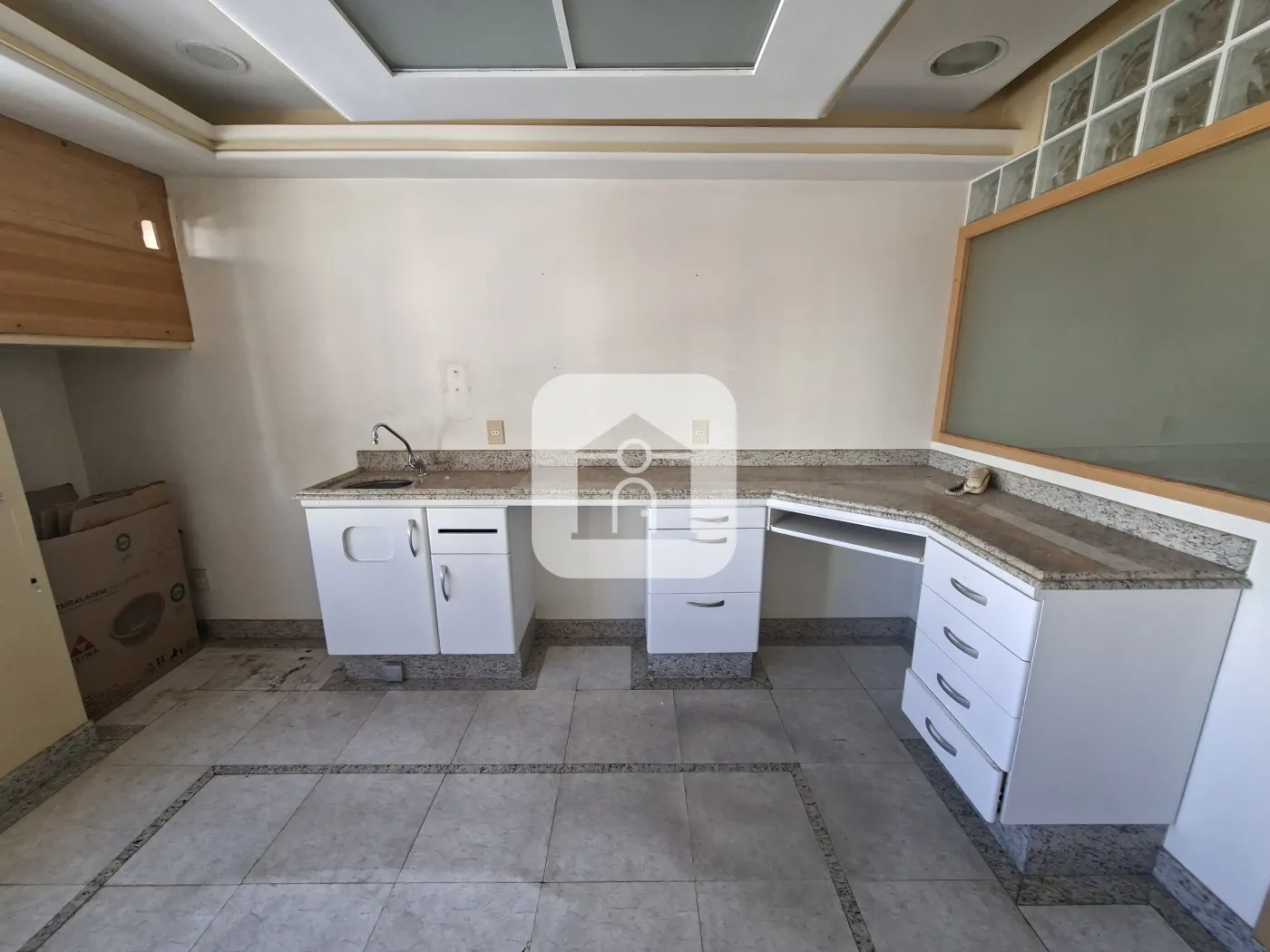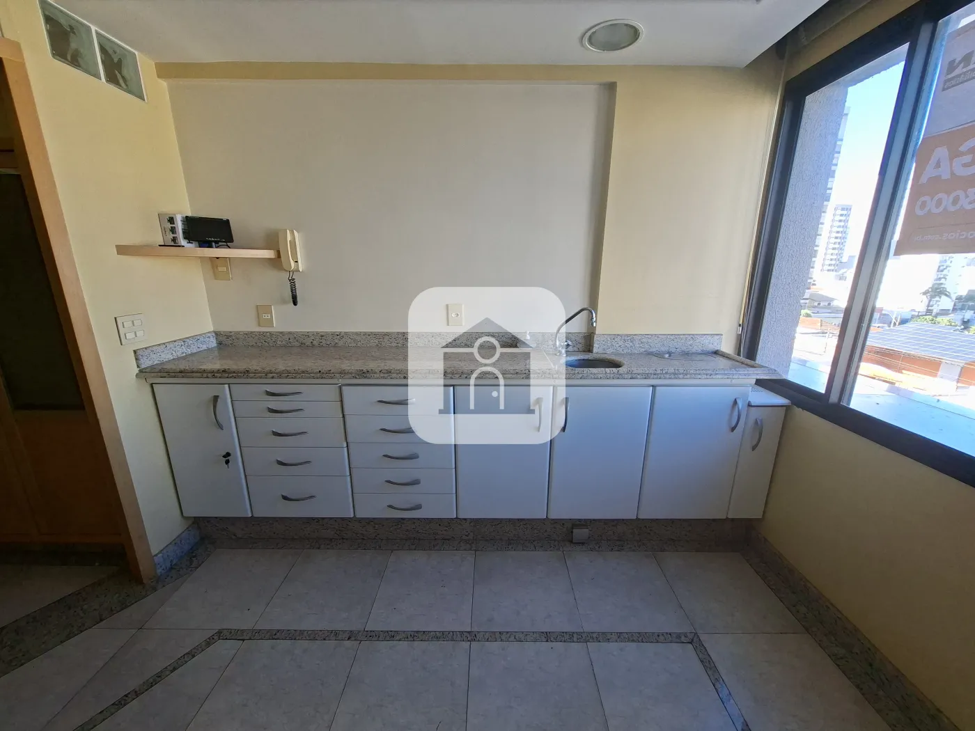 Ótima Sala Comercial montada com armários, recepção, banheiro, cozinha, repartição, câmera interna, sistema de som, 01 vaga de garagem, portaria 24 horas.