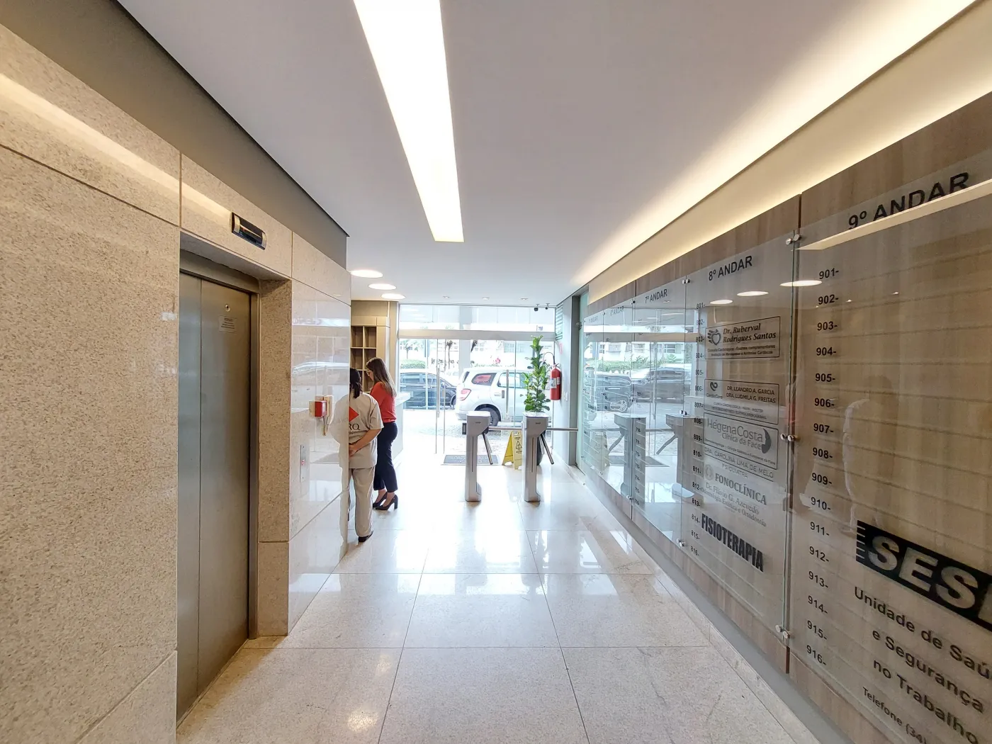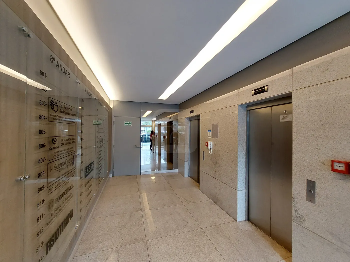Sala comercial com aproximadamente 22 metros, com banheiro, ar condicionado, prédio com ampla recepção, balcão de recepcionista, banheiros, 03 elevadores