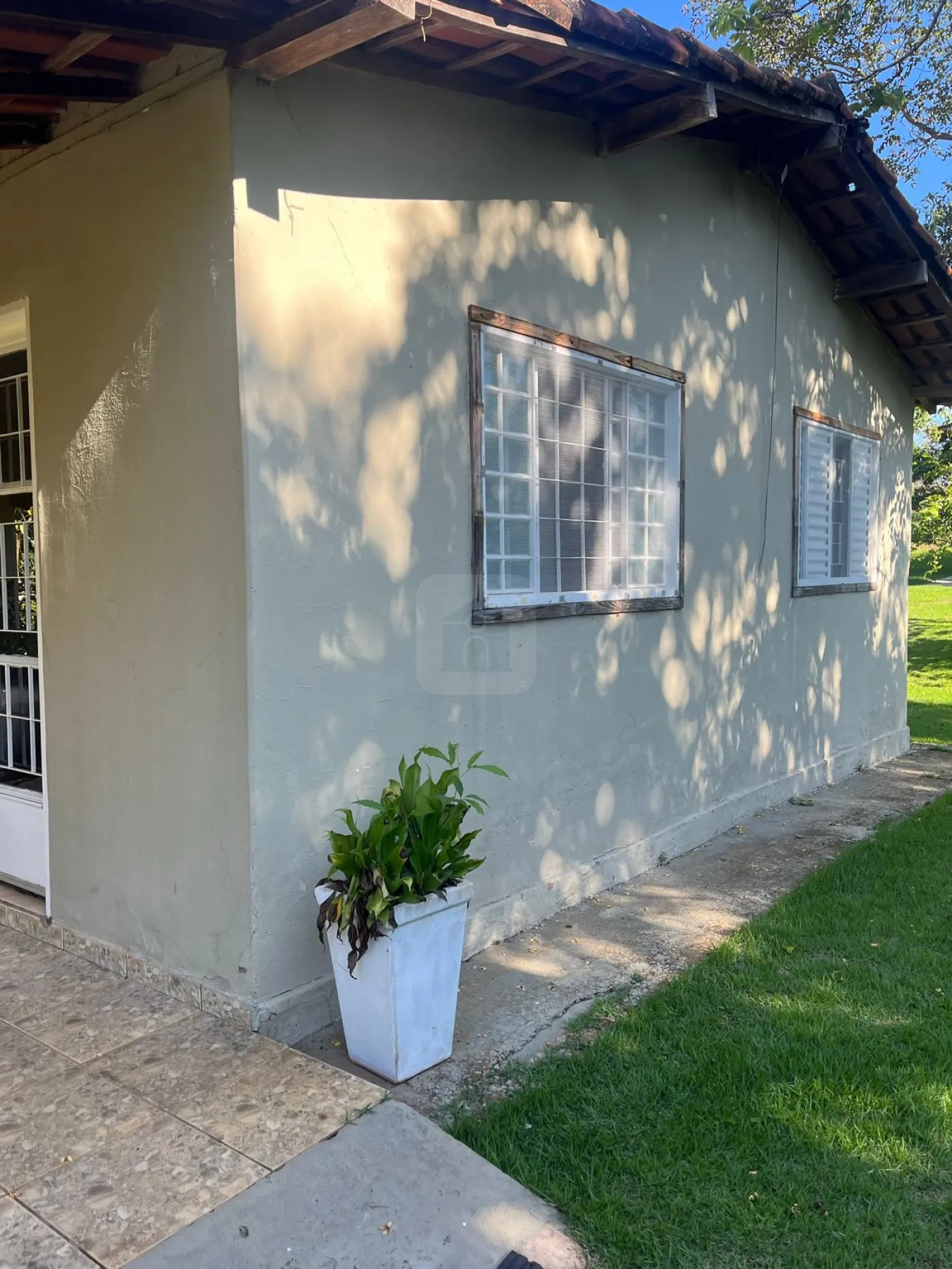 Casa de caseiro com dois quartos, sala cozinha e varanda;