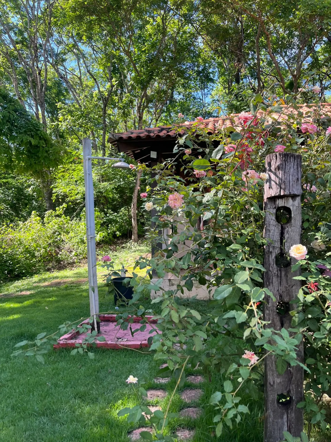 Dois chalés para hóspedes de um quarto com banheiro e varanda, sendo um com ar condicionado; imóveis mobiliados;