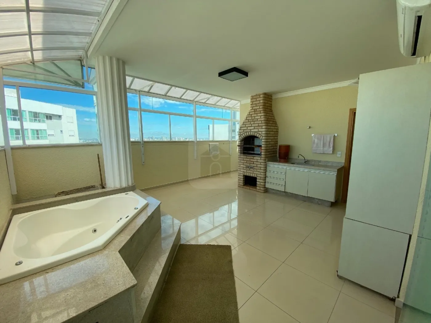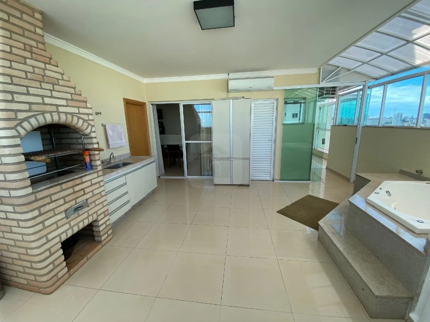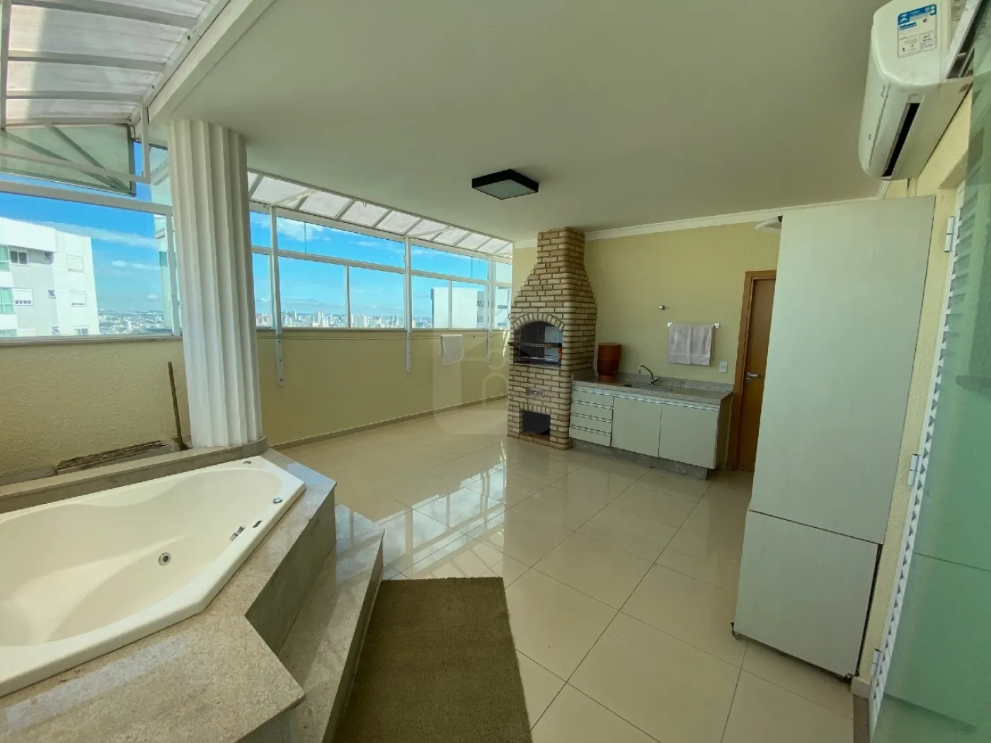 Varanda (Fechada em Blindex, com SPA, Churrasqueira, Pia e ar condicionado),