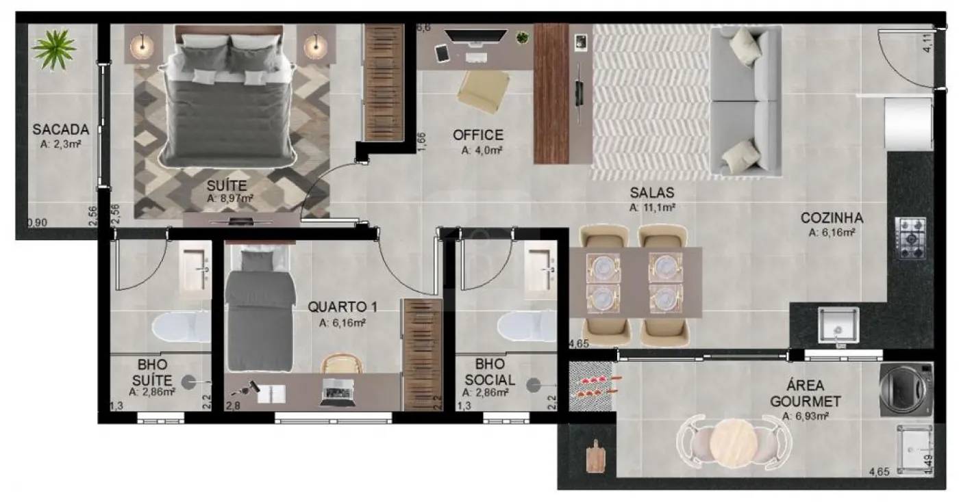 Apartamento Com 67,21m² Privativos;