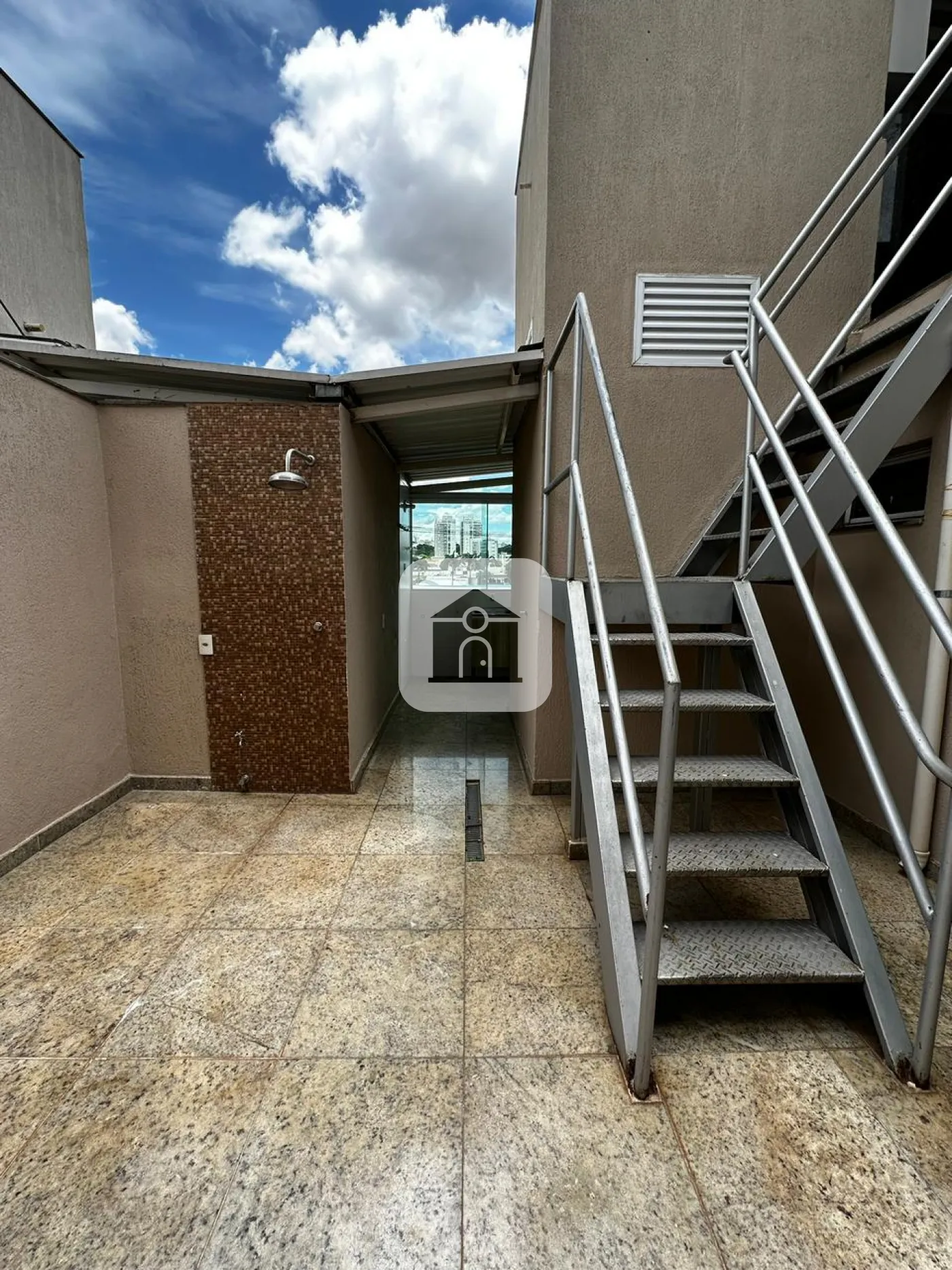 Espaço aberto com ducha para tomar sol.