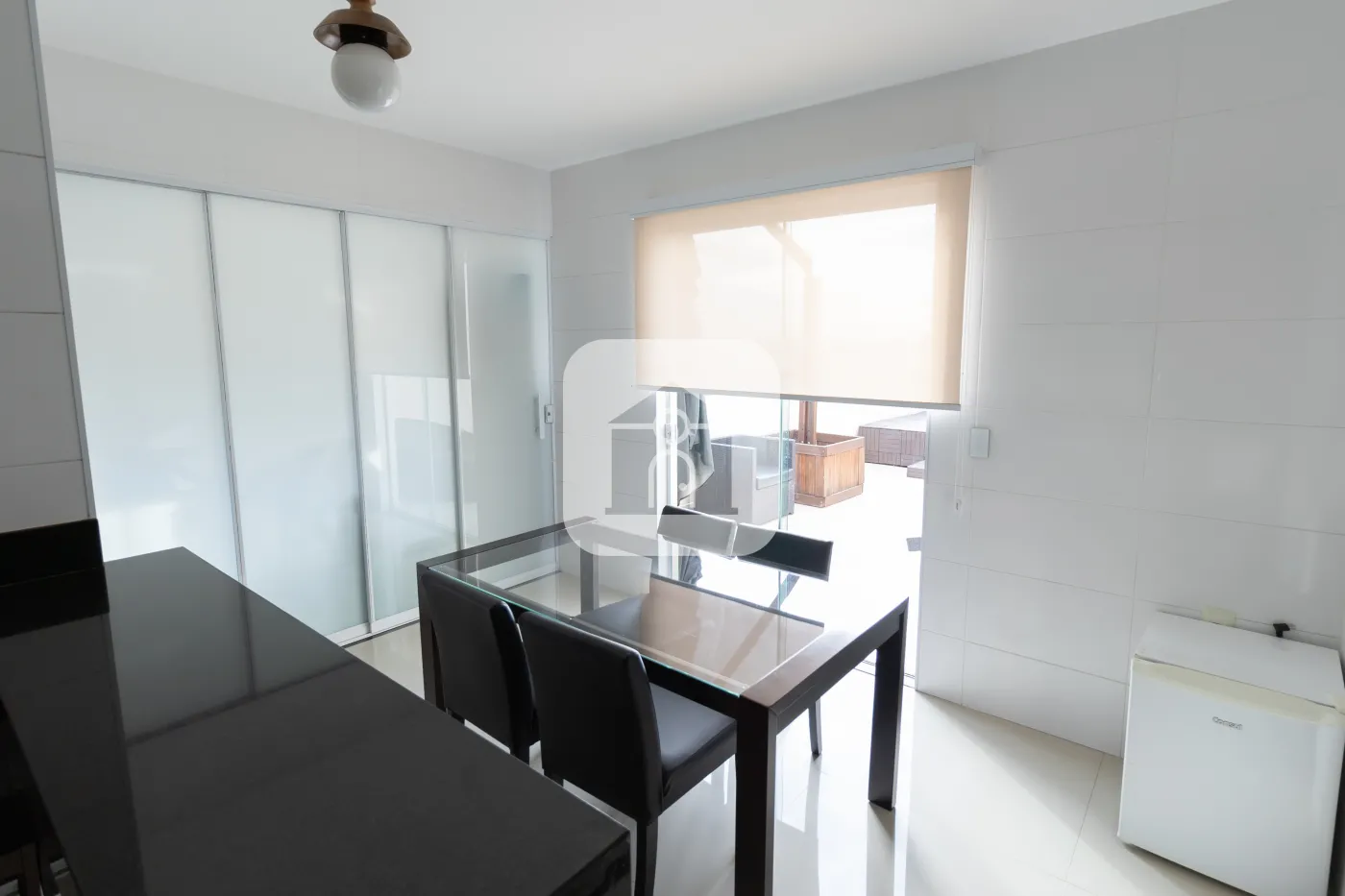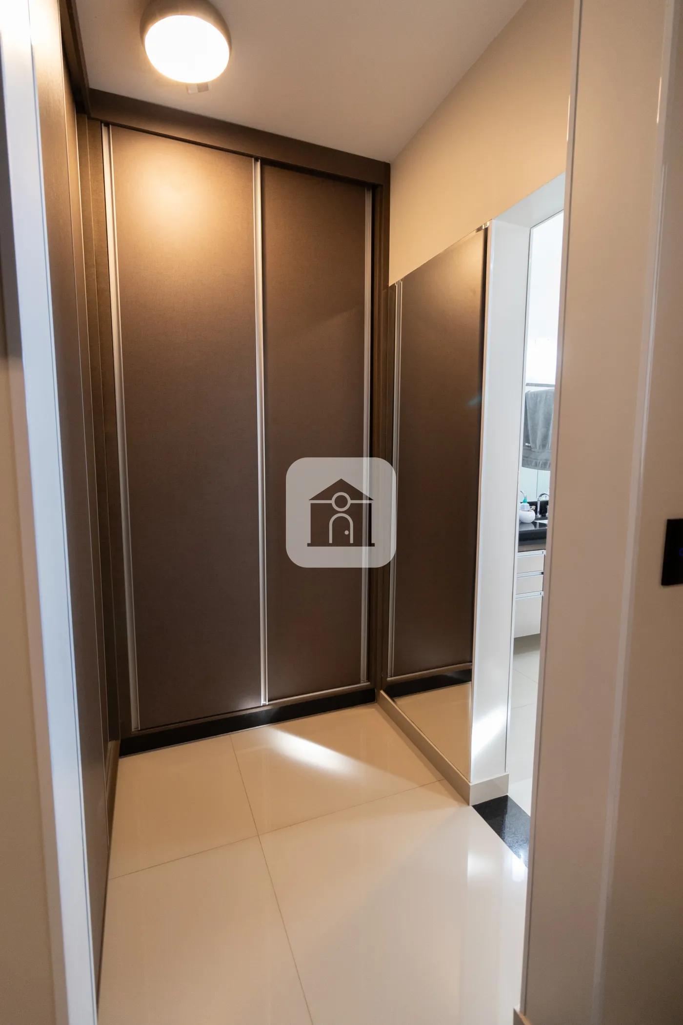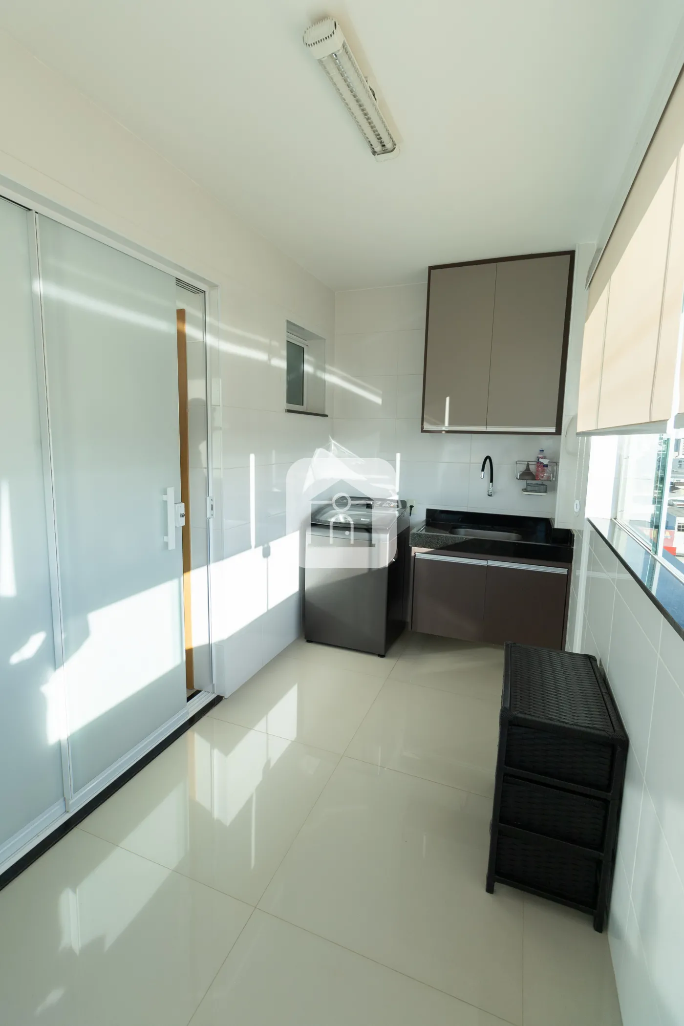 Área de Serviço segregada, oculta por cortina de vidro com armários planejados prontos para garantir organização no seu dia a dia.