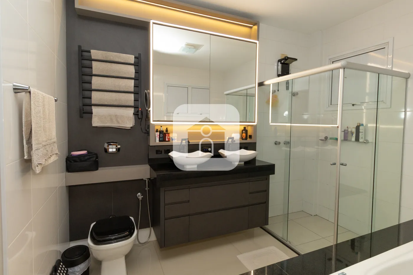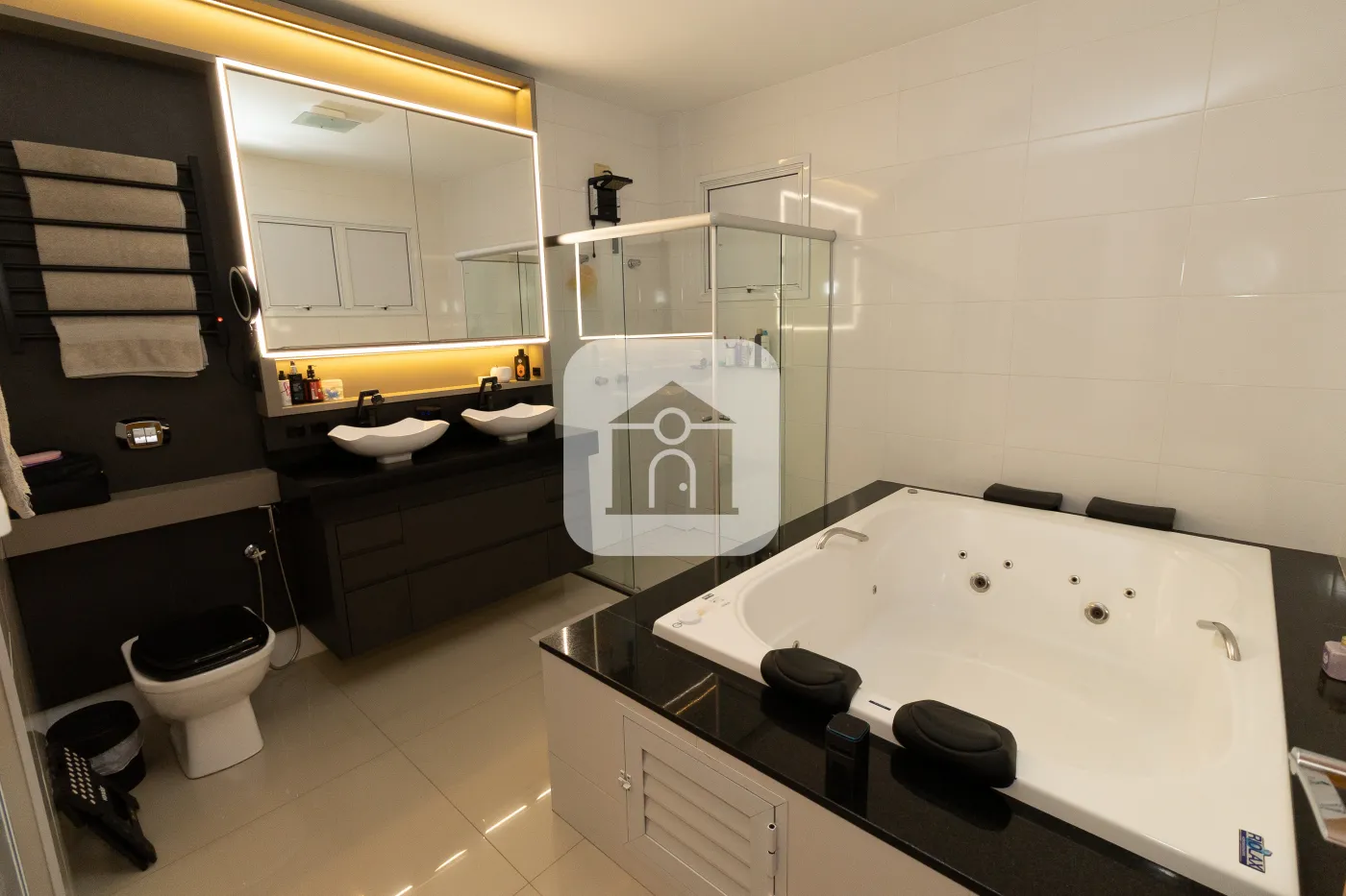 Suíte Master com Ar Condicionado, Banheira de Hidromassagem, Closet , controle de intensidade e automação dos pontos de luz.
