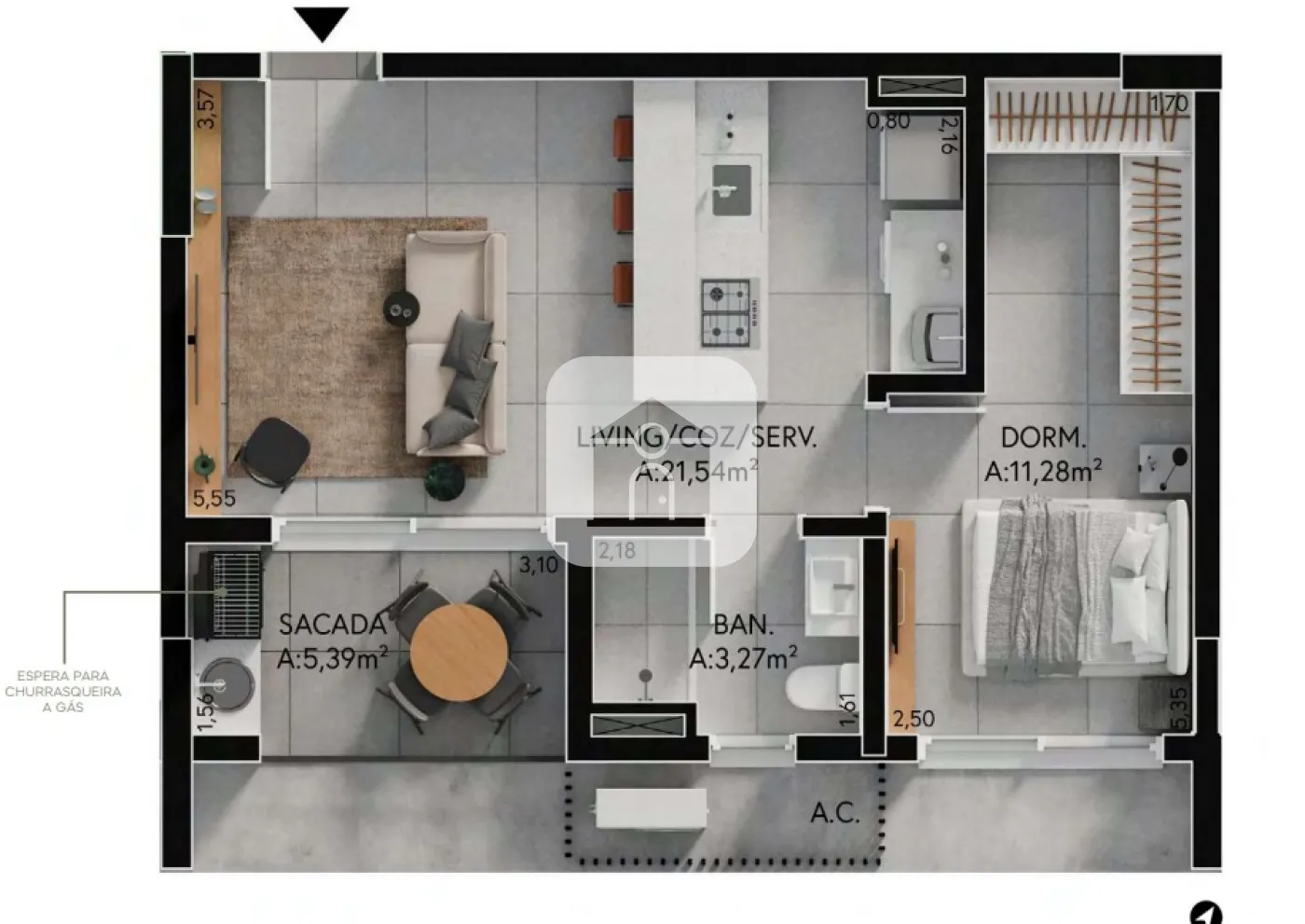 1 vaga de garagem.