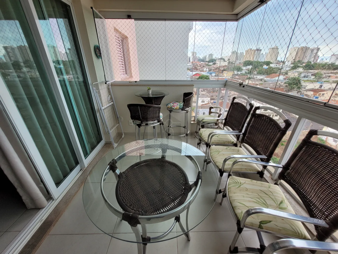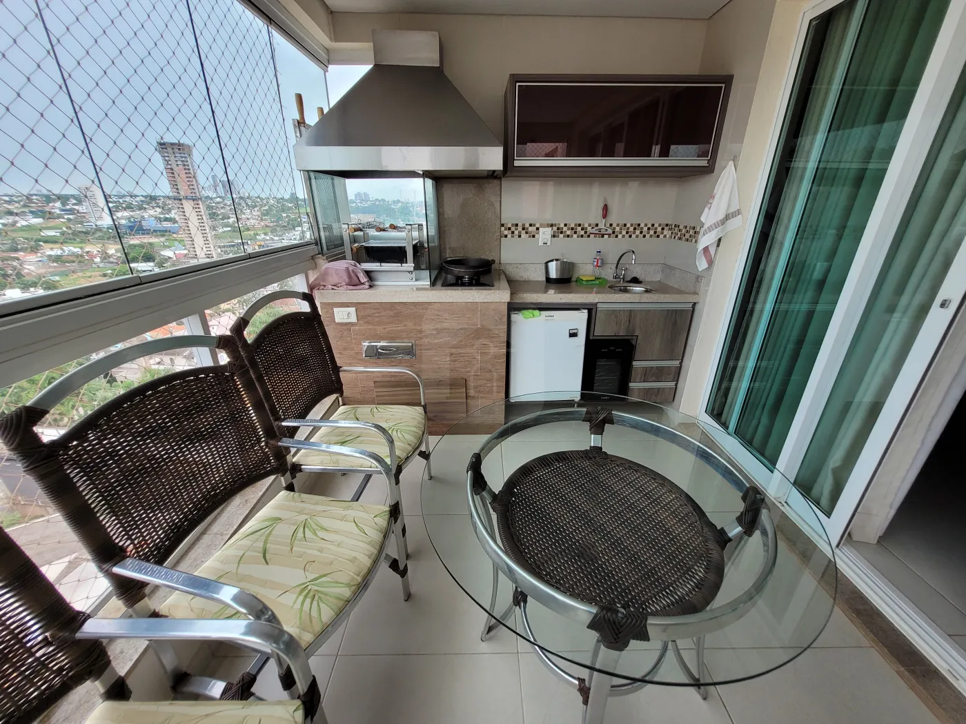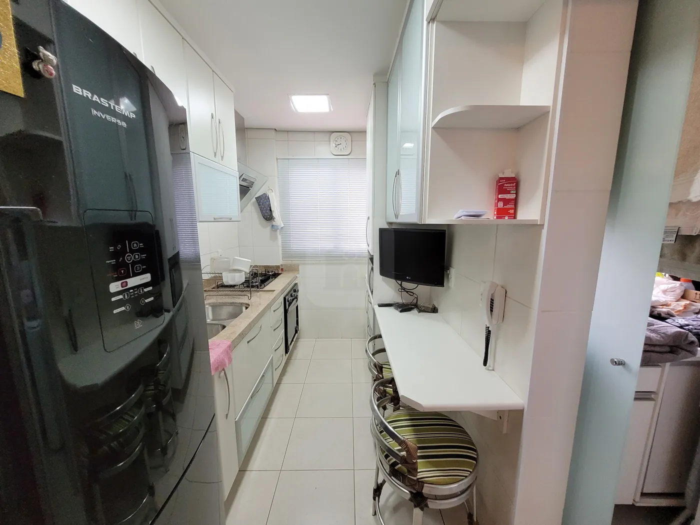 Magnífico apartamento todo mobiliado voltado para o leste com sol da manhã, com internet de alta velocidade, possuindo 3 quartos sendo 1 destinado para escritório contendo guarda-roupas com espelho em uma das portas e prateleiras abertas e outras fechadas com portas basculantes, suíte com cama queen com ar condicionado dual inverter LG recém instalado, quarto com cama solteiro 90 cm de largura, prateleiras e guarda roupa com espelho em uma das portas e mesa de estudo, cozinha com armários em MDF, fechamento das portas com amortecimento, pequena mesa para refeições rápidas, equipada com filtro de Agua comum - temperatura ambiente (Soft Baby by Everest), geladeira Brastemp Inverse (freezer frost free inferior), micro-ondas, cooktop 5 bocas, exaustor Electrolux Home Pro digital, forno a gás e loucas em porcelana e outros utensílios domésticos como panelas comuns, incluindo de pressão, cafeteira Arno (Nescafé Dolce Gusto), conjunto de garfos, facas, e colheres tamanho normal e de sobremesa, torradeira, liquidificador, espremedor de laranjas, potes para mantimentos, entre outros; lavabo com torneira com vidro tipo cascata, com iluminação comum com exaustor e outra decorativa, banho social e banho suíte com armários em MDF sob pia, com espelho da pia ao teto, box vidro temperado verde, chuveiros elétricos, vasos sanitários com tampa com fechamento soft (com amortecimento); sala de Jantar com espelho até o teto em uma das paredes, com mesa de vidro de 19 mm com 6 cadeiras de madeira com madeira com estofados, Sala de estar com TV, com painel em MDF com TV, com Sistema de som com 5 alto-falantes no teto, possibilidade de projeção de imagem da TV na parede, sofá em couro, varanda gourmet com pia, fogão 2 bocas com exaustor, churrasqueira, frigobar 80L, pequena adega climatizada para 6 garrafas de vinho com mesa circular em vidro 90 cm diâmetro e 4 cadeiras com assento em tecido Acquablok novo, mesa tipo bistrô circular 60 cm diâmetro com 2 cadeiras altas com assento giratório com acabamento em tecido Acquablok, fechada com cortina em blinded; Área de serviço com armários, pia, e máquina de lavar Electrolux 12 kg. Tela de proteção em todas as janelas.