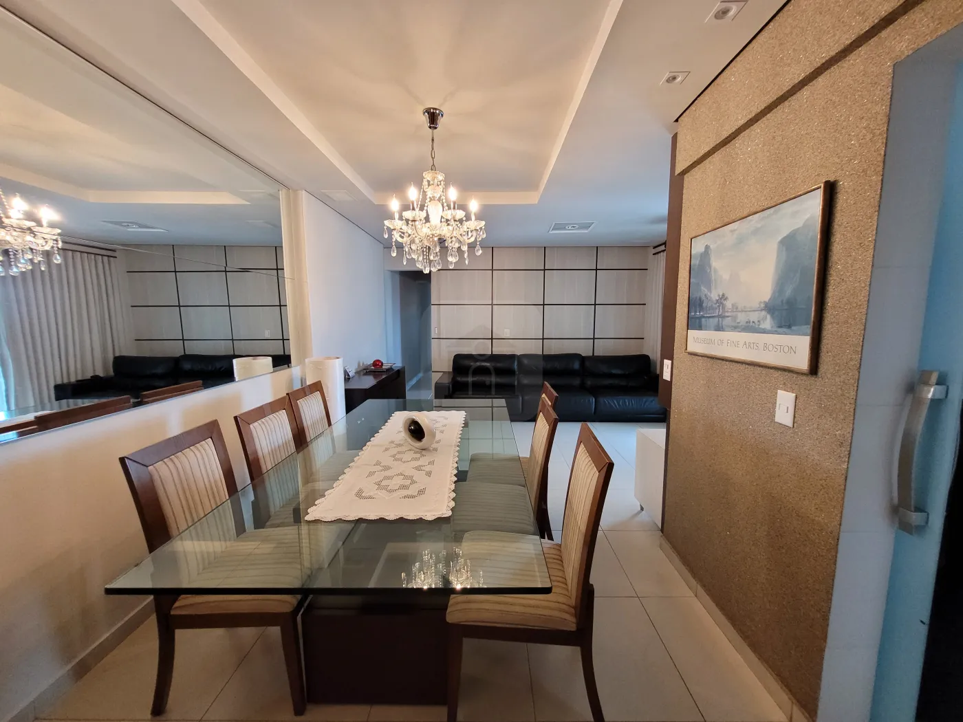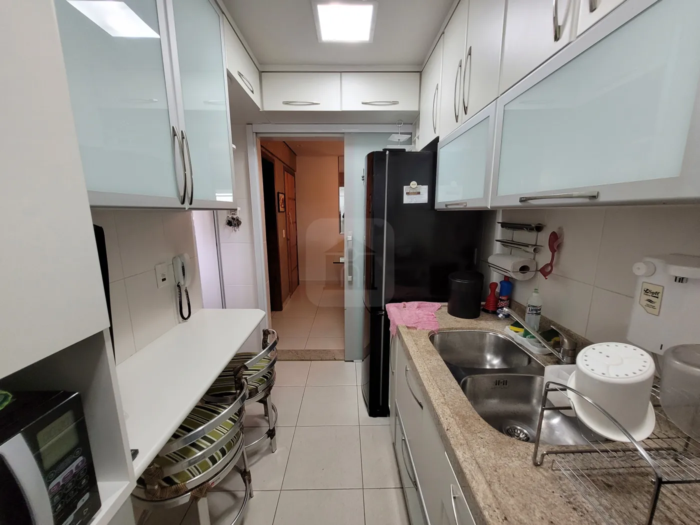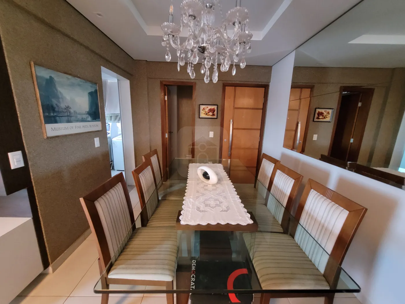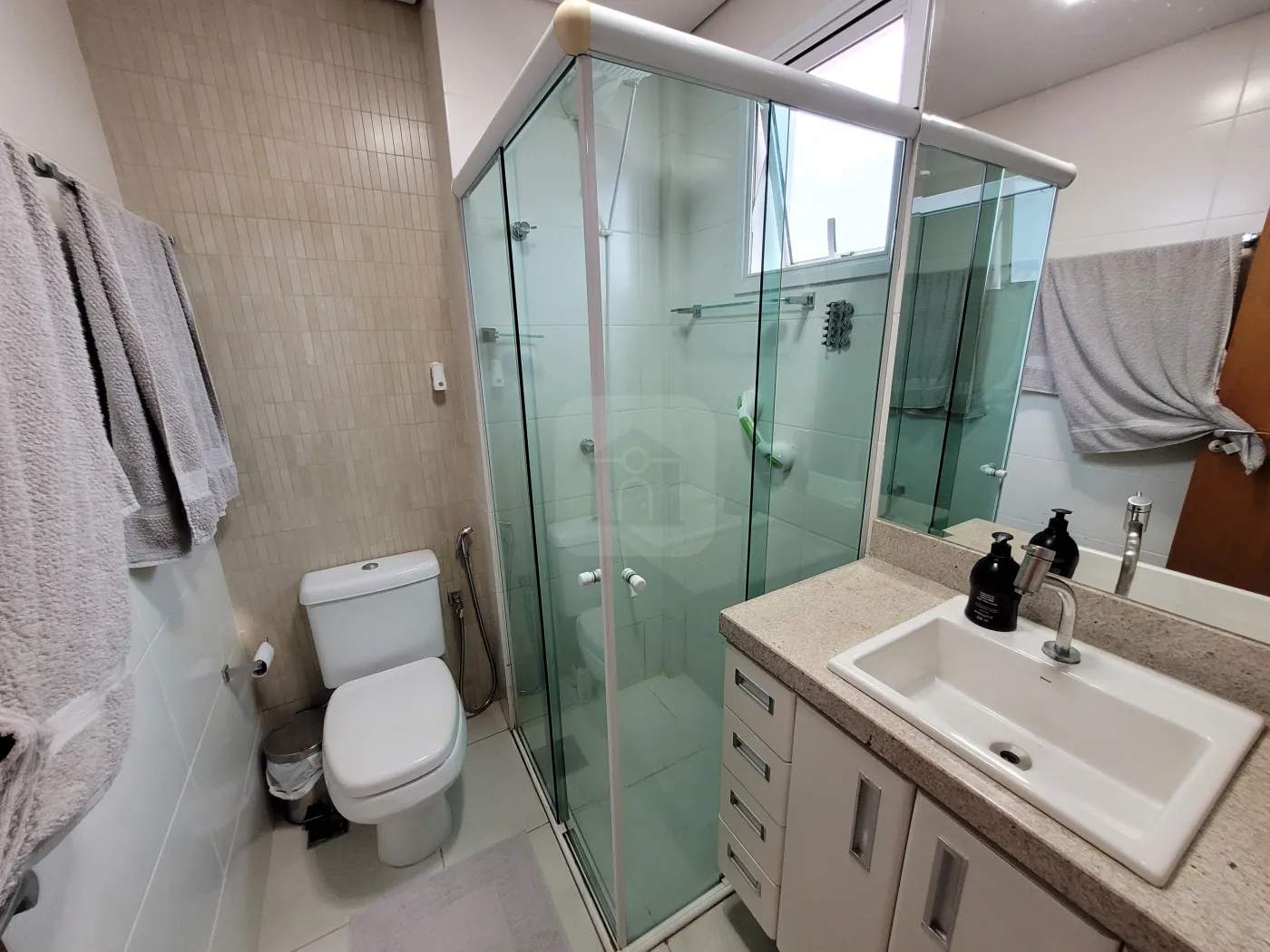 Magnífico apartamento todo mobiliado voltado para o leste com sol da manhã, com internet de alta velocidade, possuindo 3 quartos sendo 1 destinado para escritório contendo guarda-roupas com espelho em uma das portas e prateleiras abertas e outras fechadas com portas basculantes, suíte com cama queen com ar condicionado dual inverter LG recém instalado, quarto com cama solteiro 90 cm de largura, prateleiras e guarda roupa com espelho em uma das portas e mesa de estudo, cozinha com armários em MDF, fechamento das portas com amortecimento, pequena mesa para refeições rápidas, equipada com filtro de Agua comum - temperatura ambiente (Soft Baby by Everest), geladeira Brastemp Inverse (freezer frost free inferior), micro-ondas, cooktop 5 bocas, exaustor Electrolux Home Pro digital, forno a gás e loucas em porcelana e outros utensílios domésticos como panelas comuns, incluindo de pressão, cafeteira Arno (Nescafé Dolce Gusto), conjunto de garfos, facas, e colheres tamanho normal e de sobremesa, torradeira, liquidificador, espremedor de laranjas, potes para mantimentos, entre outros; lavabo com torneira com vidro tipo cascata, com iluminação comum com exaustor e outra decorativa, banho social e banho suíte com armários em MDF sob pia, com espelho da pia ao teto, box vidro temperado verde, chuveiros elétricos, vasos sanitários com tampa com fechamento soft (com amortecimento); sala de Jantar com espelho até o teto em uma das paredes, com mesa de vidro de 19 mm com 6 cadeiras de madeira com madeira com estofados, Sala de estar com TV, com painel em MDF com TV, com Sistema de som com 5 alto-falantes no teto, possibilidade de projeção de imagem da TV na parede, sofá em couro, varanda gourmet com pia, fogão 2 bocas com exaustor, churrasqueira, frigobar 80L, pequena adega climatizada para 6 garrafas de vinho com mesa circular em vidro 90 cm diâmetro e 4 cadeiras com assento em tecido Acquablok novo, mesa tipo bistrô circular 60 cm diâmetro com 2 cadeiras altas com assento giratório com acabamento em tecido Acquablok, fechada com cortina em blinded; Área de serviço com armários, pia, e máquina de lavar Electrolux 12 kg. Tela de proteção em todas as janelas.