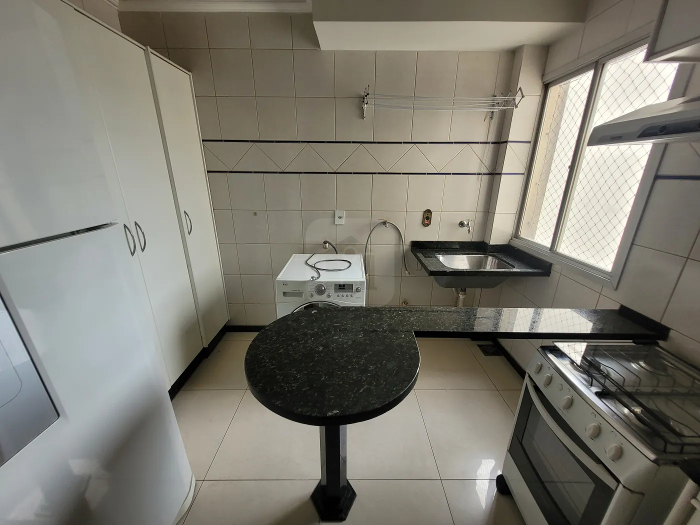 03 quartos com armários, sendo 01 suíte com box em vidro temperado, sala, banheiro social com box em vidro temperado, cozinha com armário, área de serviço, 02 vaga de estacionamento. MOBILIADO com geladeira; sofá; cama de solteiro; cama de casal; cortina; máquina de lavar (lava e seca); painel com TV; micro-ondas; ar condicionado e fogão.