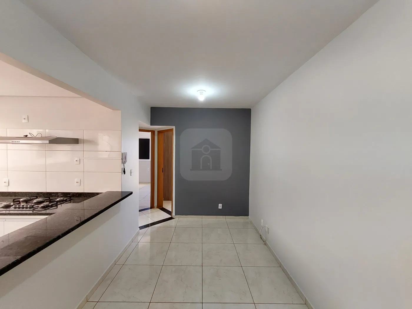 Apartamento com sala, cozinha com cooktop, área de serviço, 02 quartos sendo 01 com guarda roupa, 01 banheiro, 01 vaga de garagem.