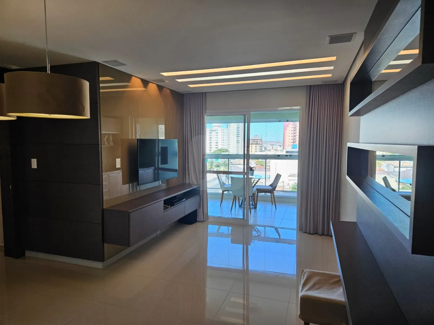 Sala em 02 ambientes com varanda gourmet.