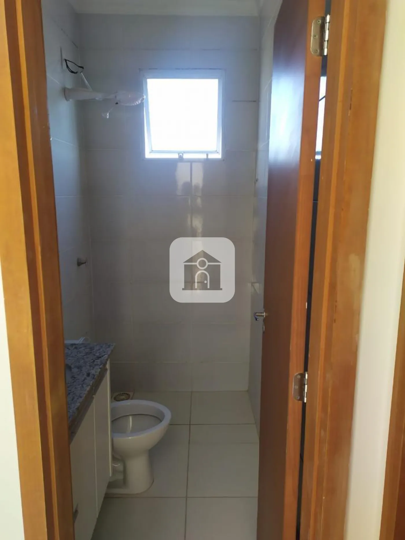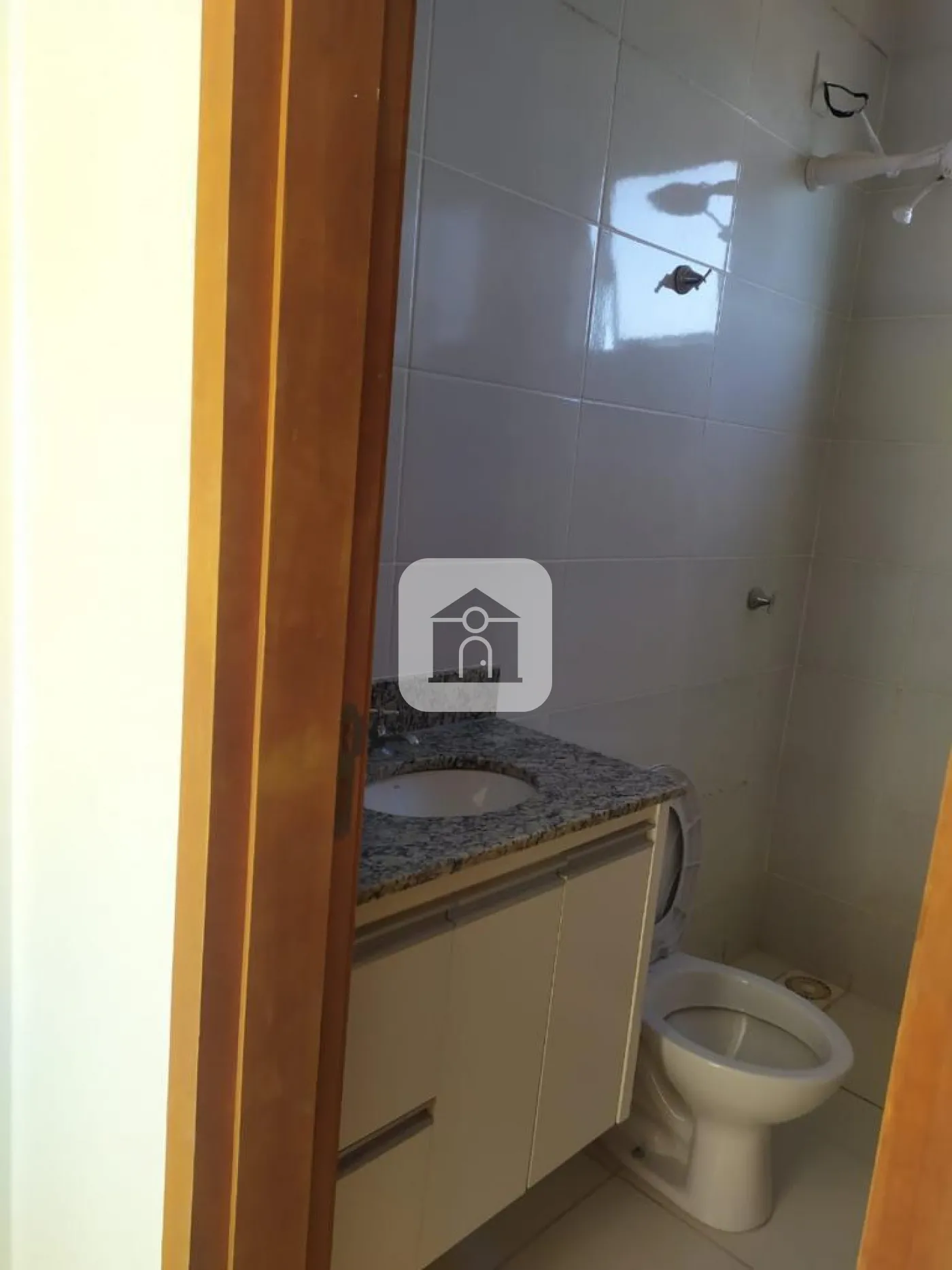 Banheiro social com armário sob a pia