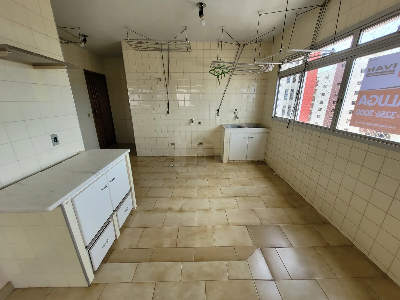 Dispensa, área de serviço com armário;