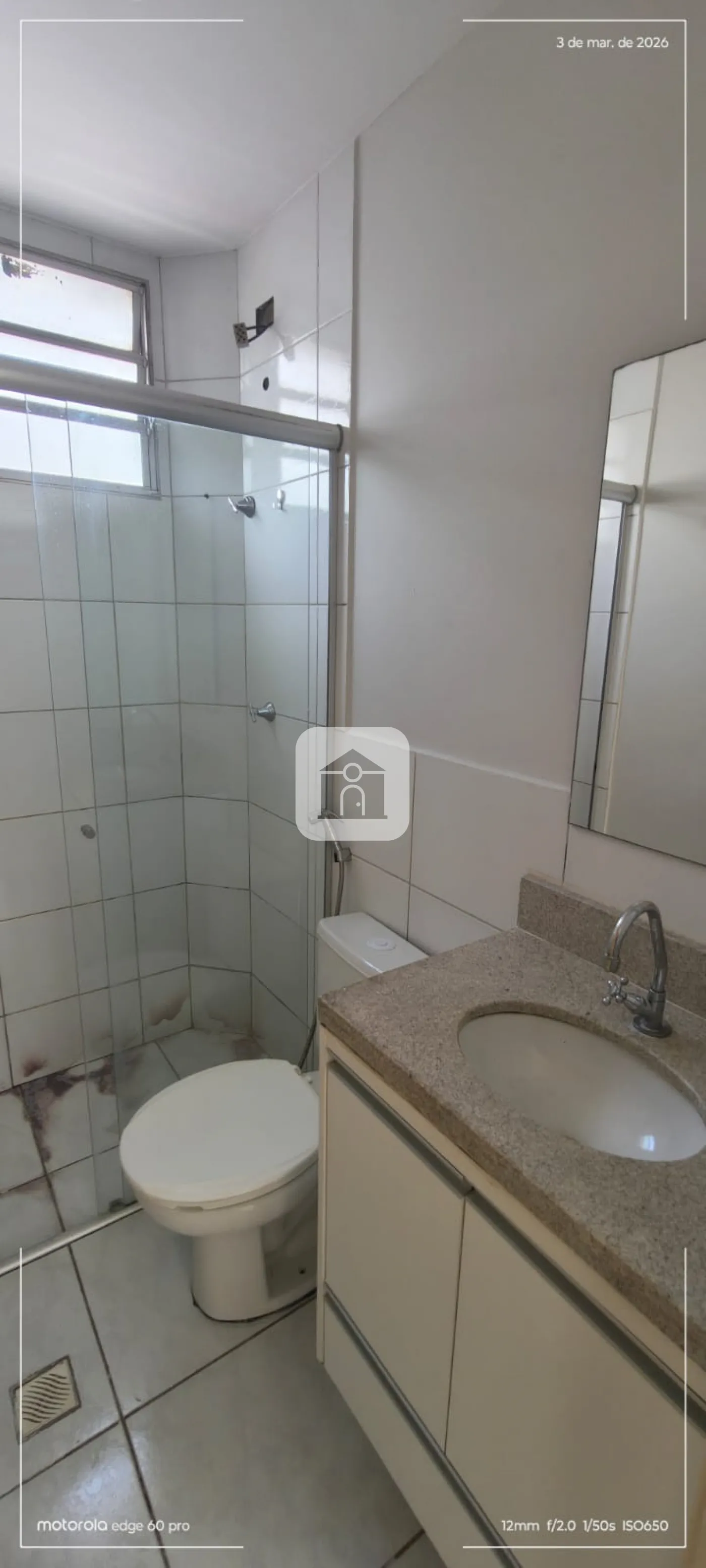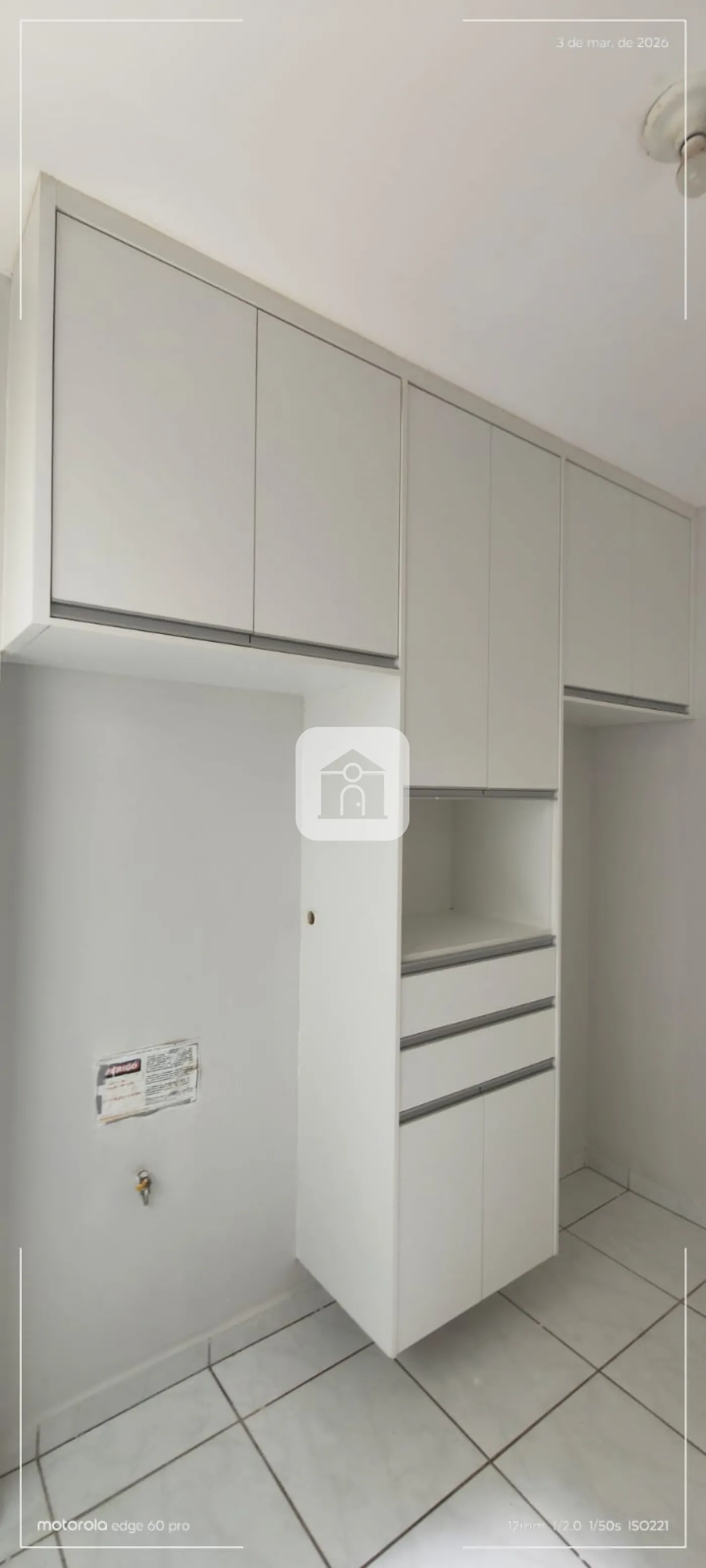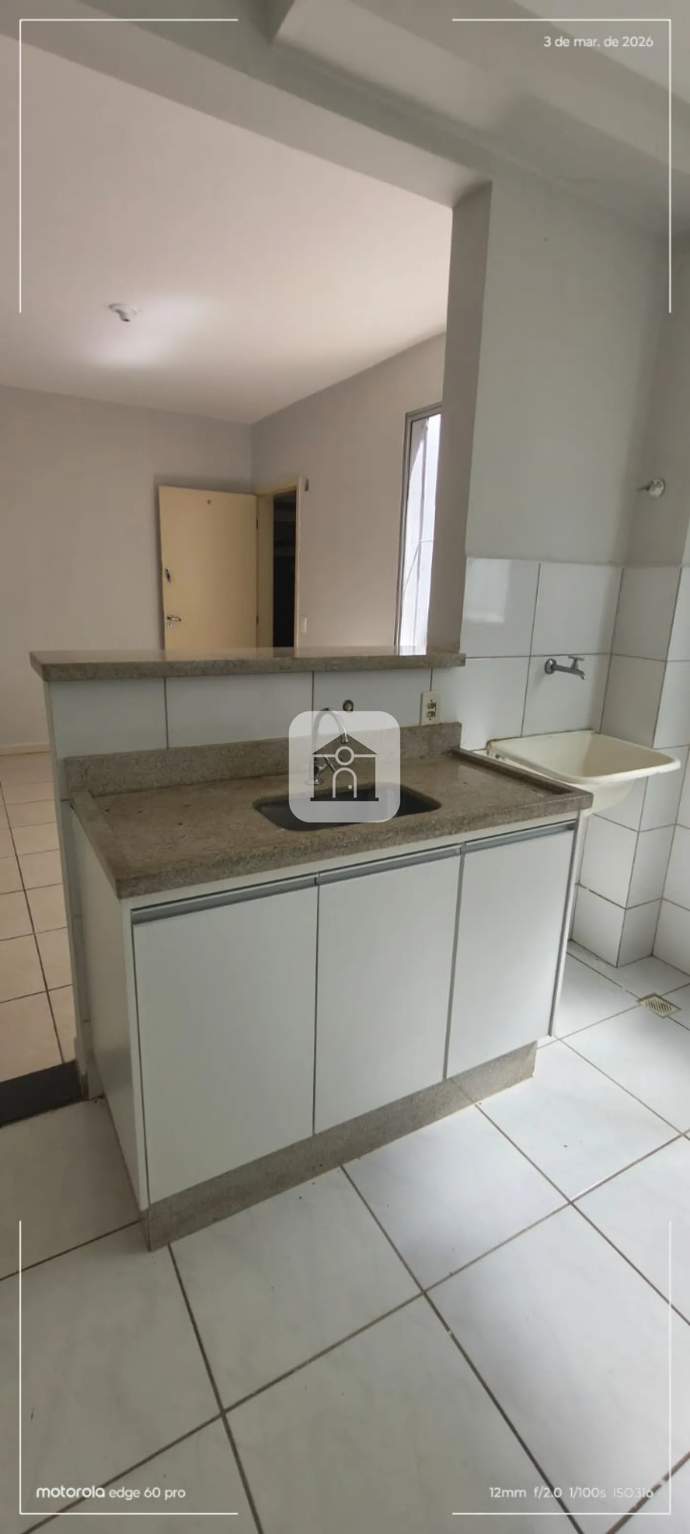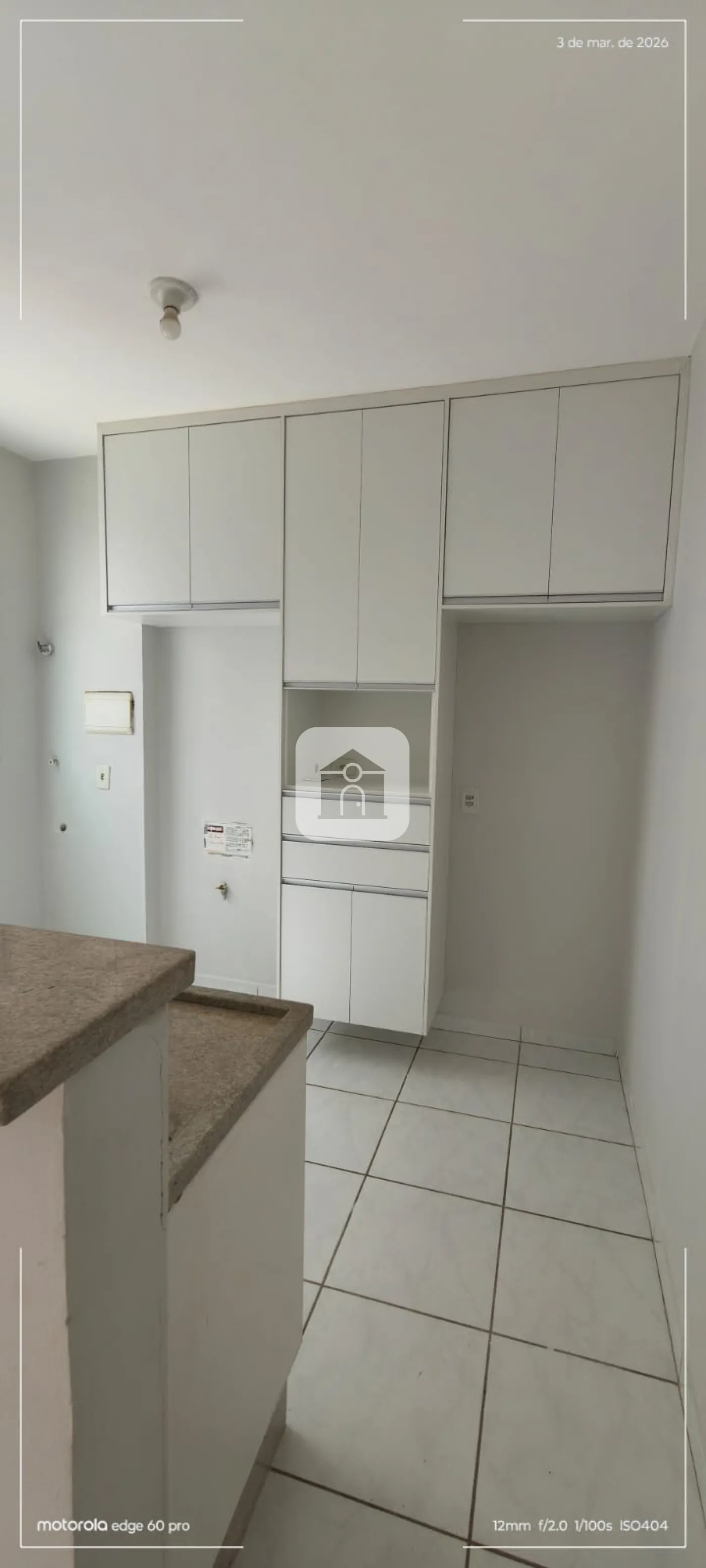 Apartamento térreo com 02 quartos com armários, sala, banheiro com armário e box, cozinha com armários.