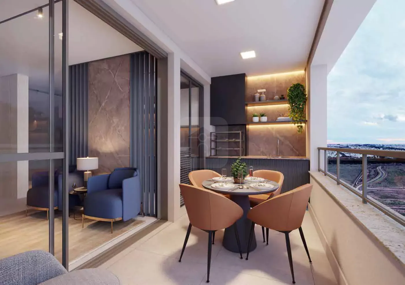 - Varanda Gourmet com churrasqueira à carvão;