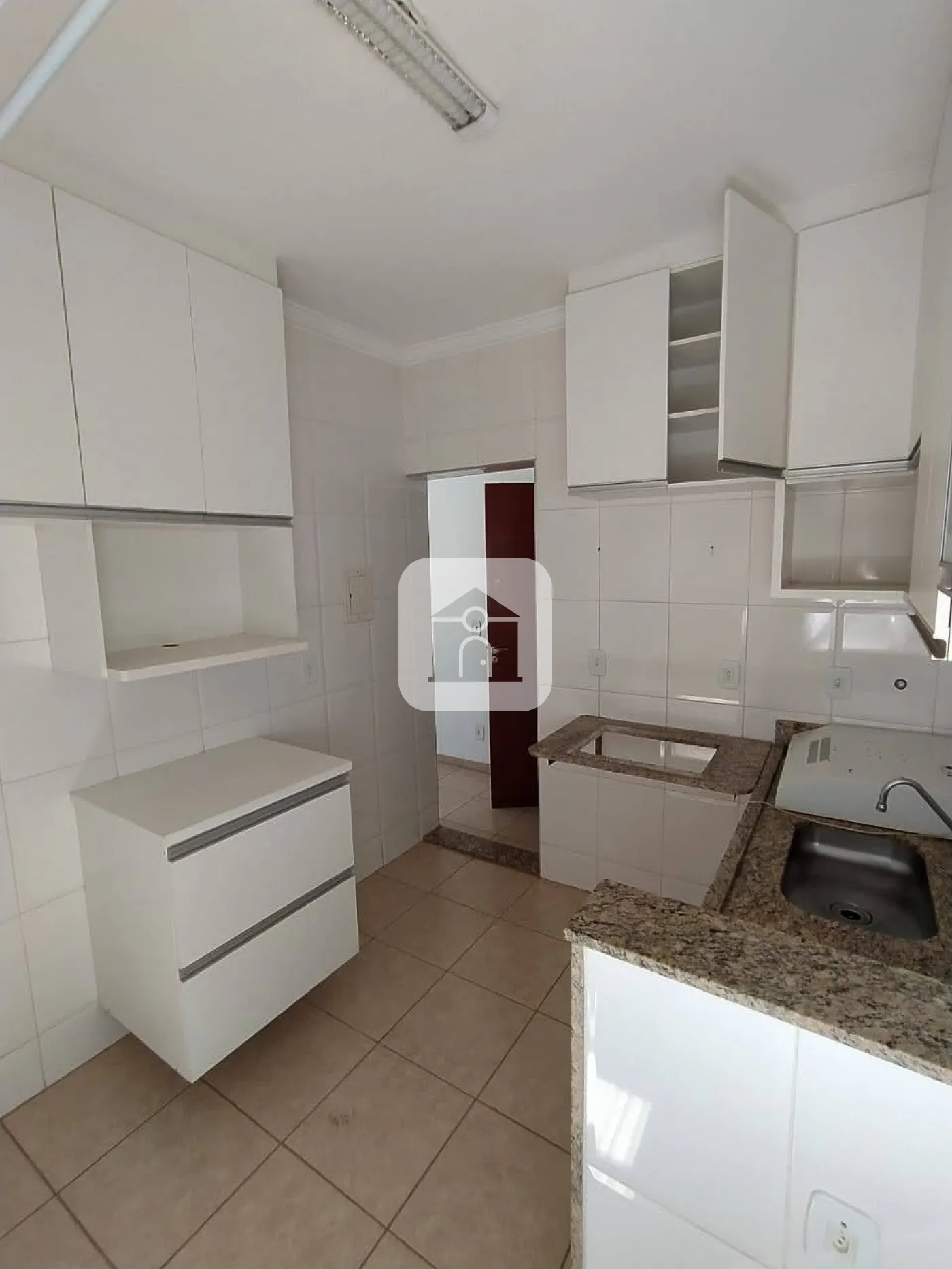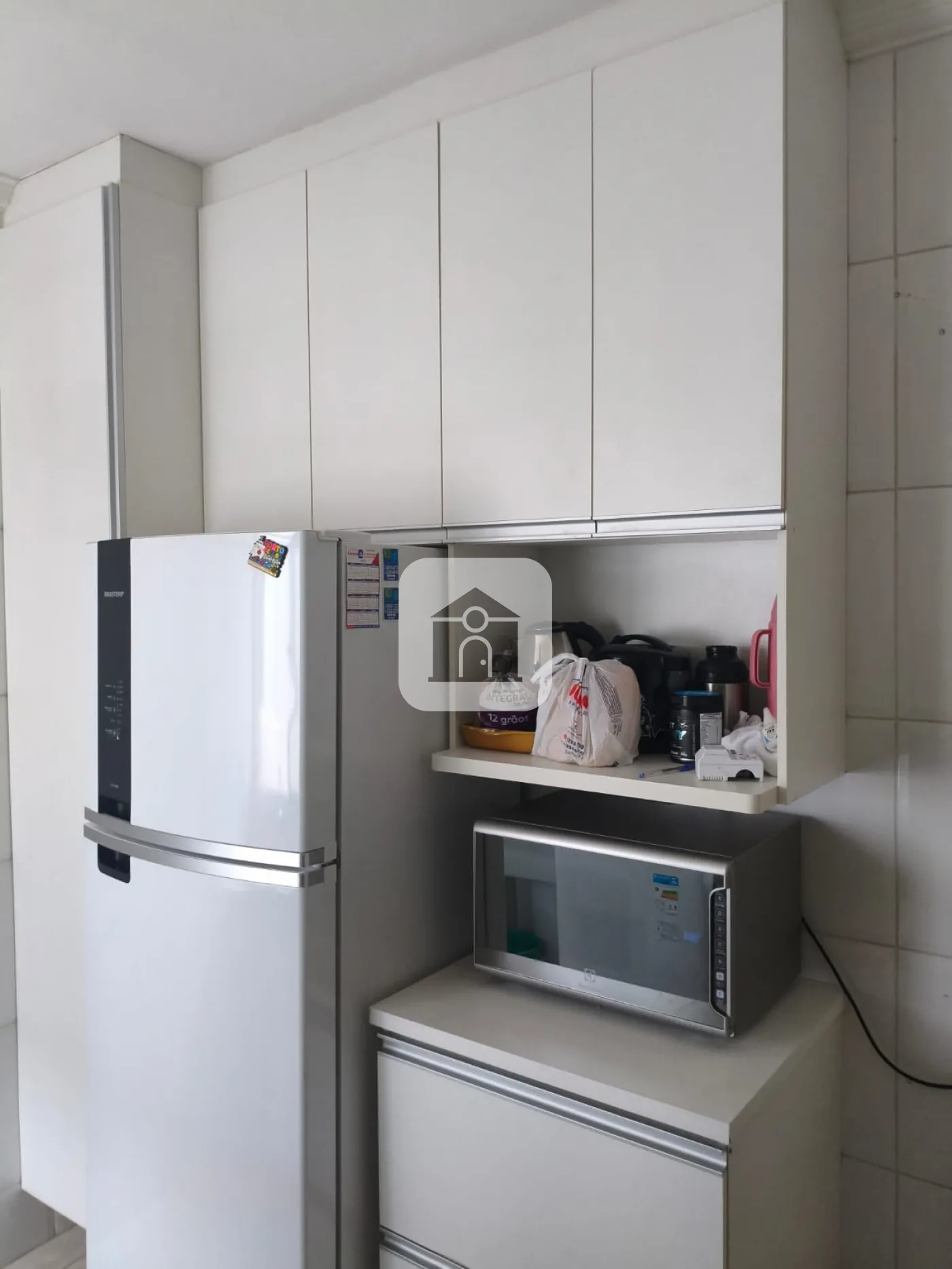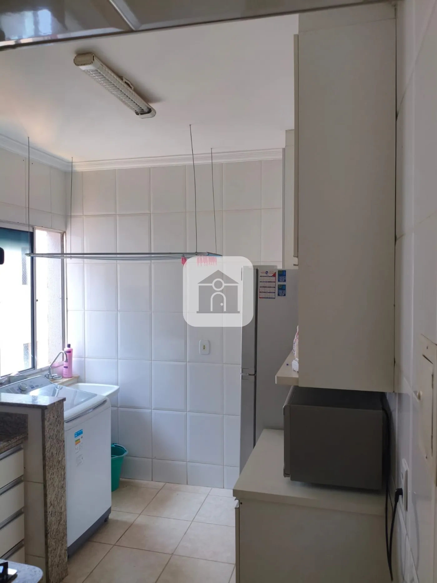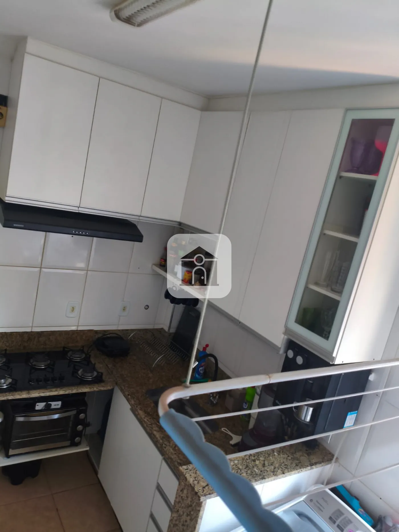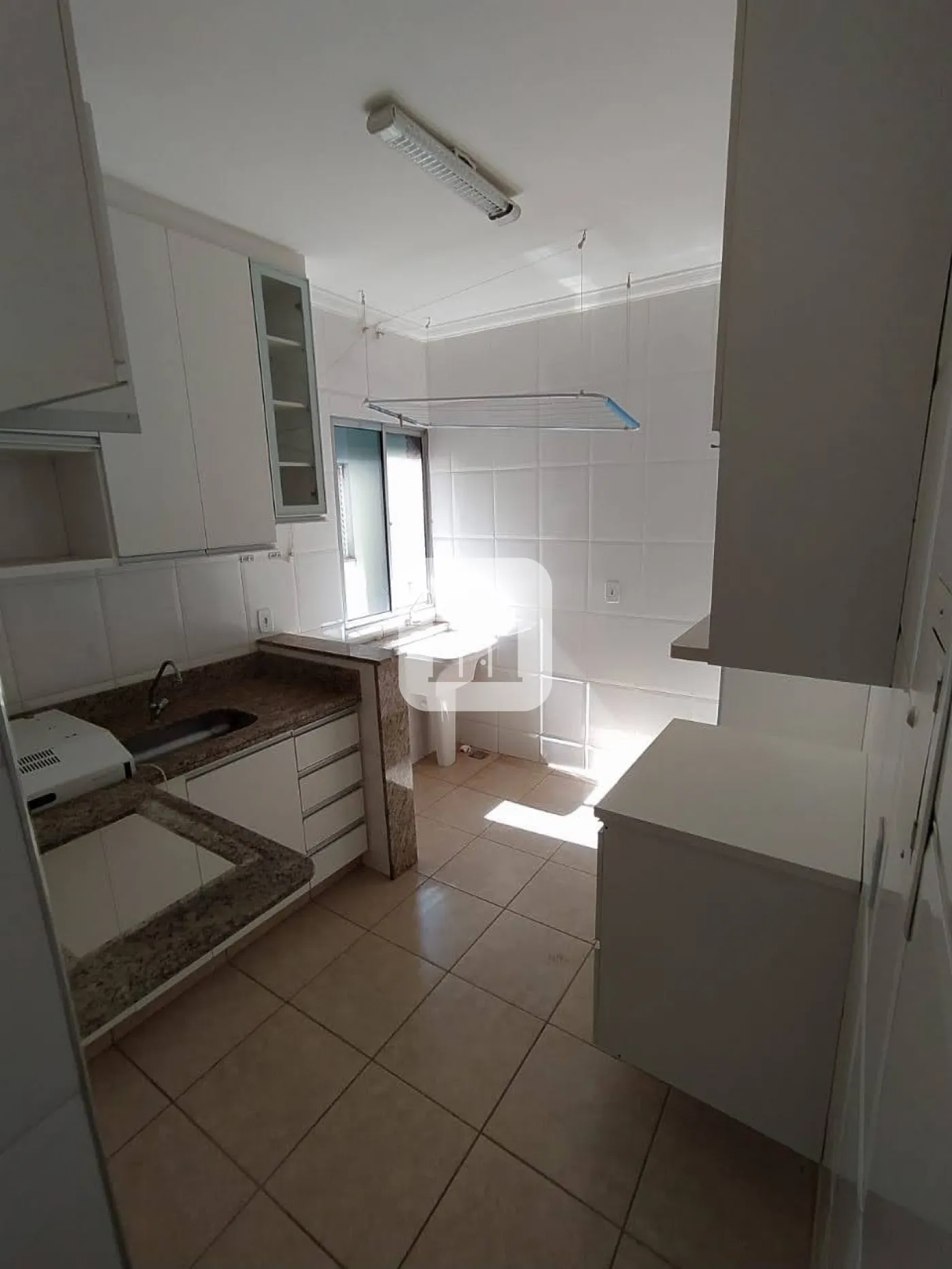 - Cozinha com armários conjugada com a área de serviço