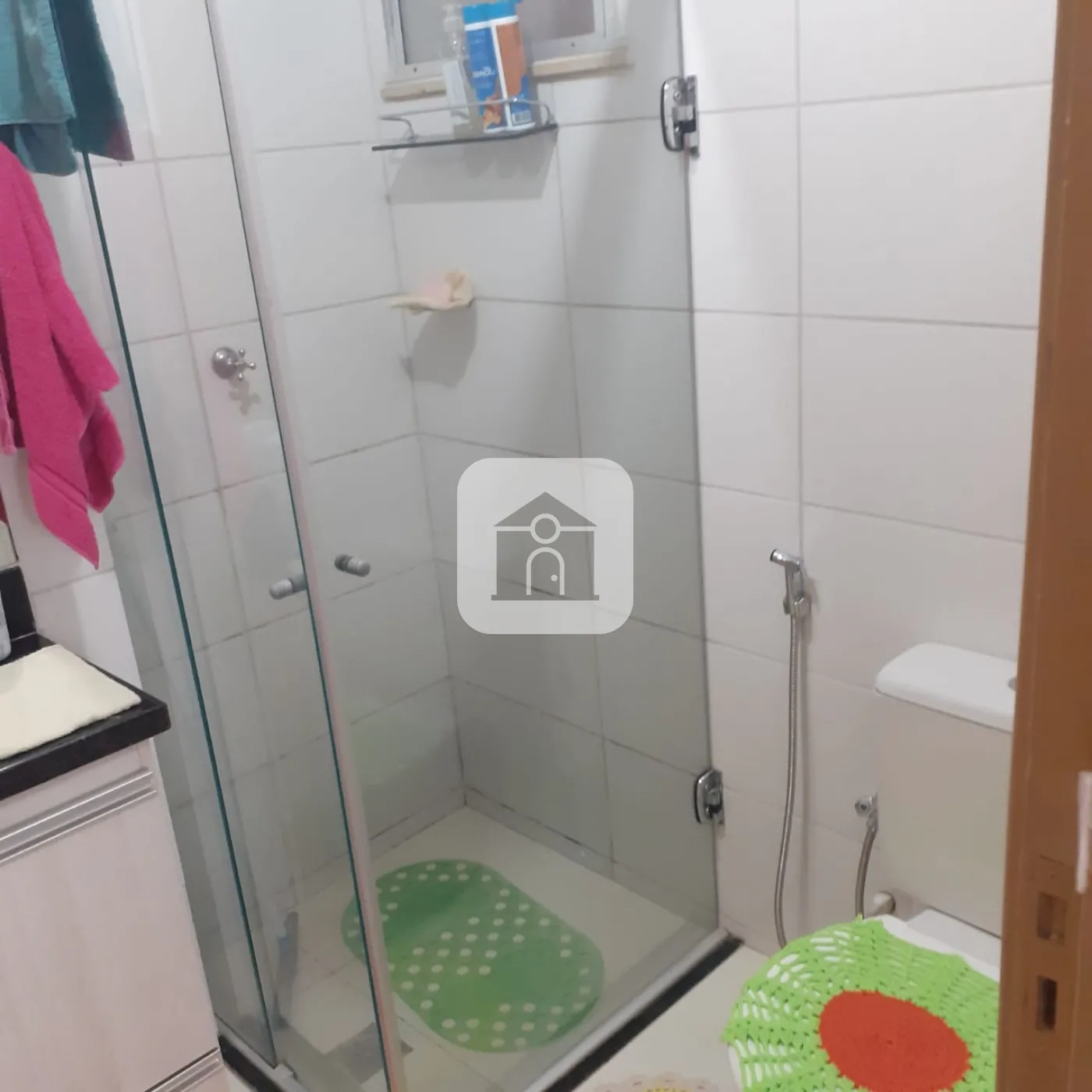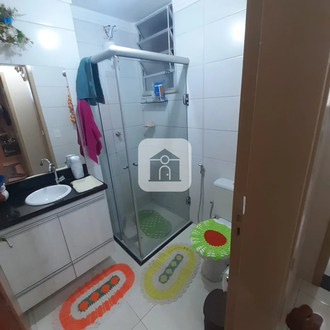 Banheiro Social: Possui armários e box.