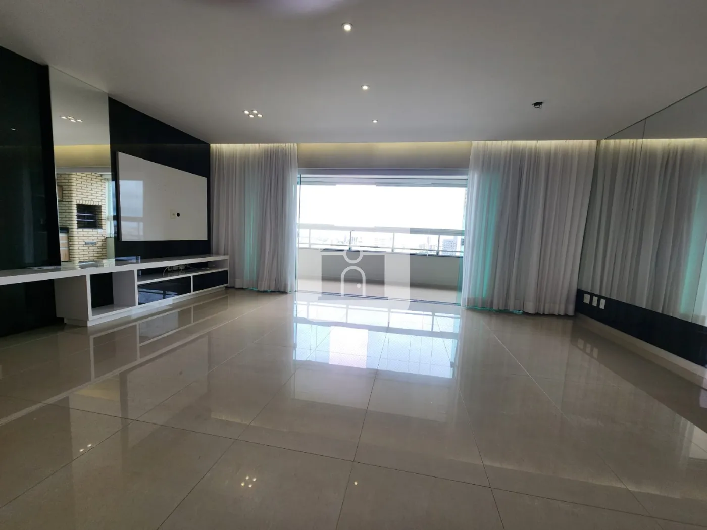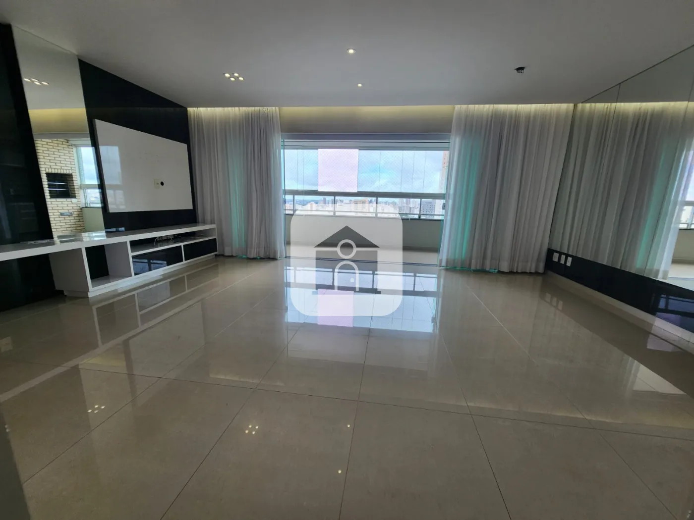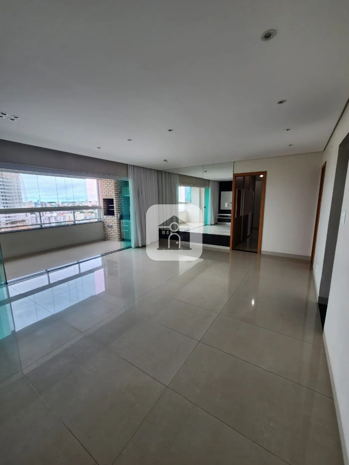 Sala em 02 ambientes, varanda gourmet com churrasqueira;