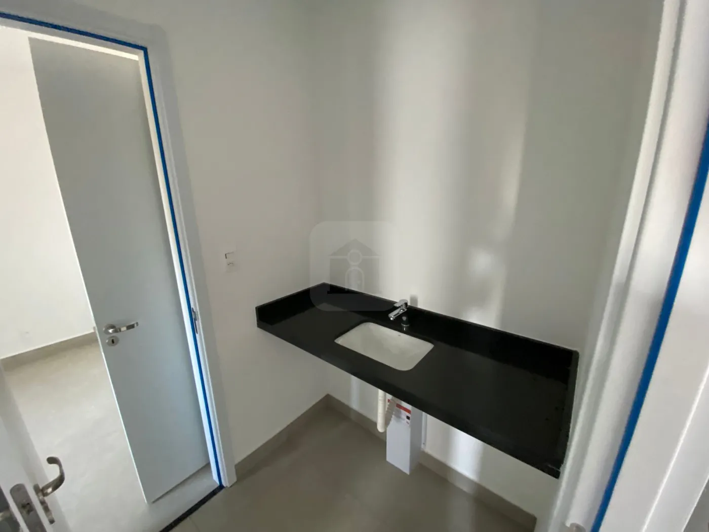 Nicho nos banheiros com a mesma pedra do restante do apartamento