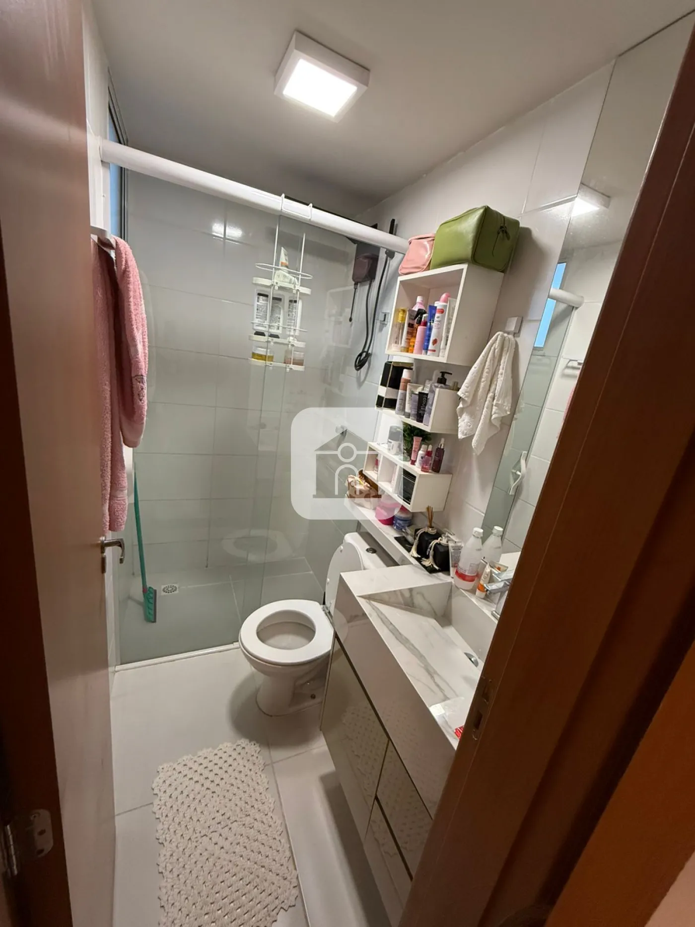 Banheiro social com box e armário