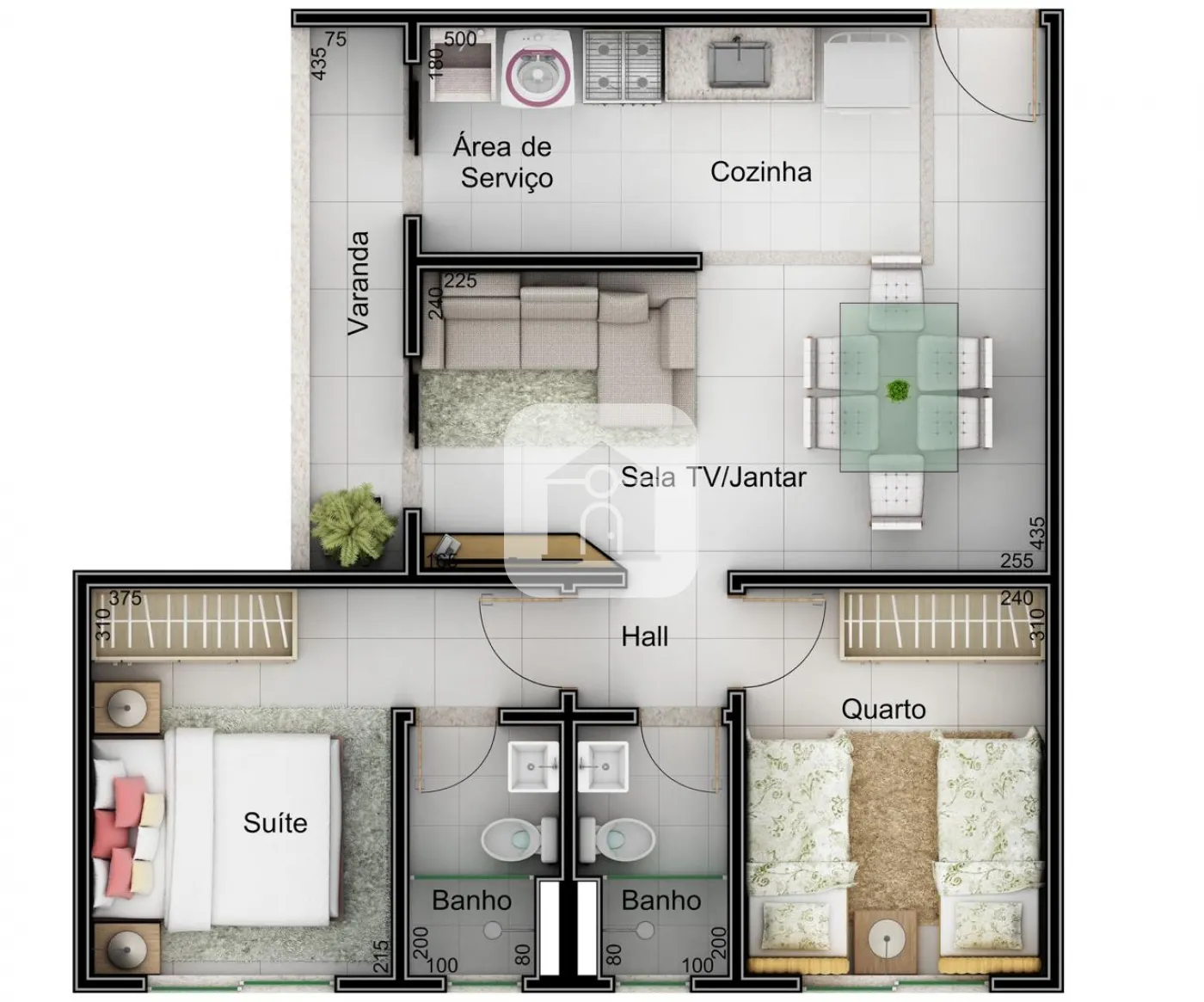 02 quartos, sendo 01 suíte;