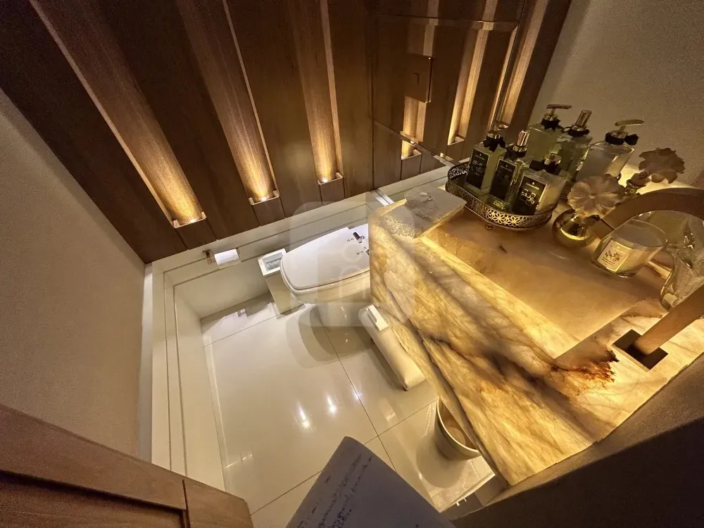Todo montado com armários e box em Blindex.